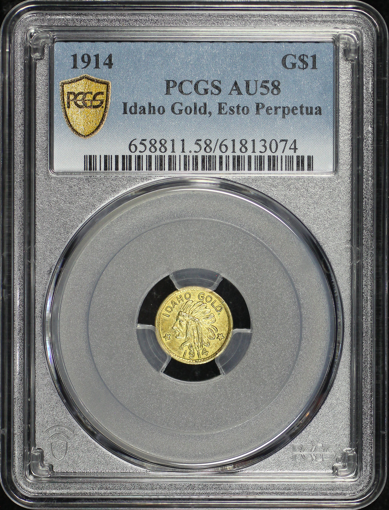 1914 G$1 Idaho Gold, Esto Perpetua Gold Commemorative PCGS AU-58