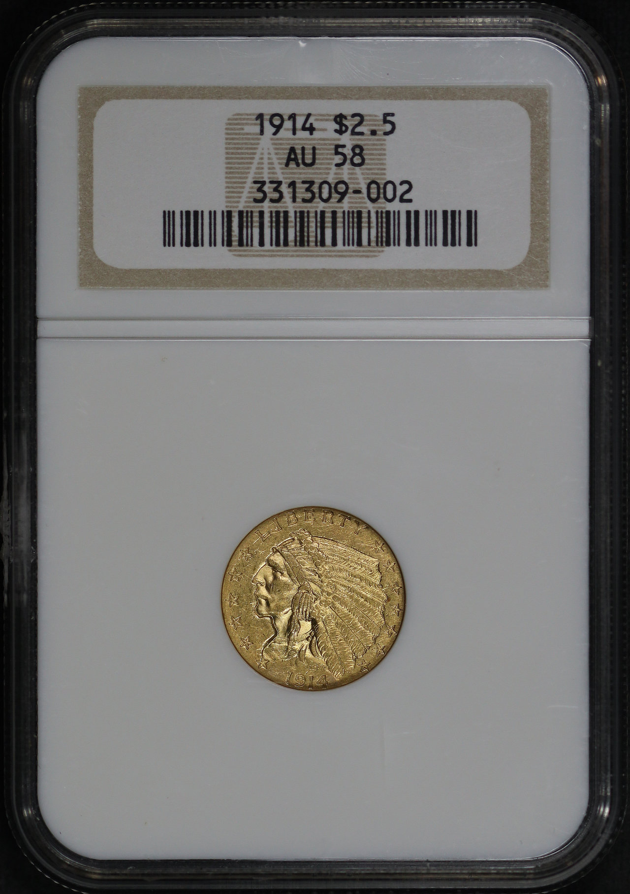 1914 Indian $2.5 NGC AU-58.
