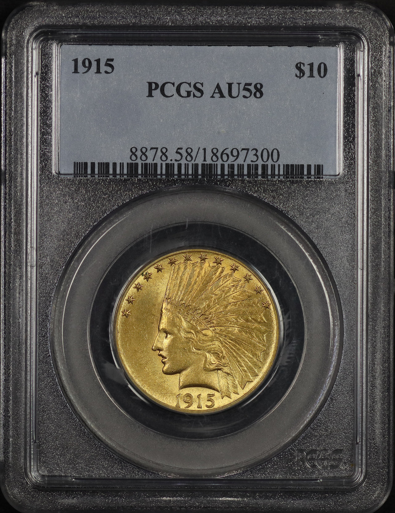 1915 Indian $10 Motto PCGS AU-58 designed by Augustus Saint Gaudens.
