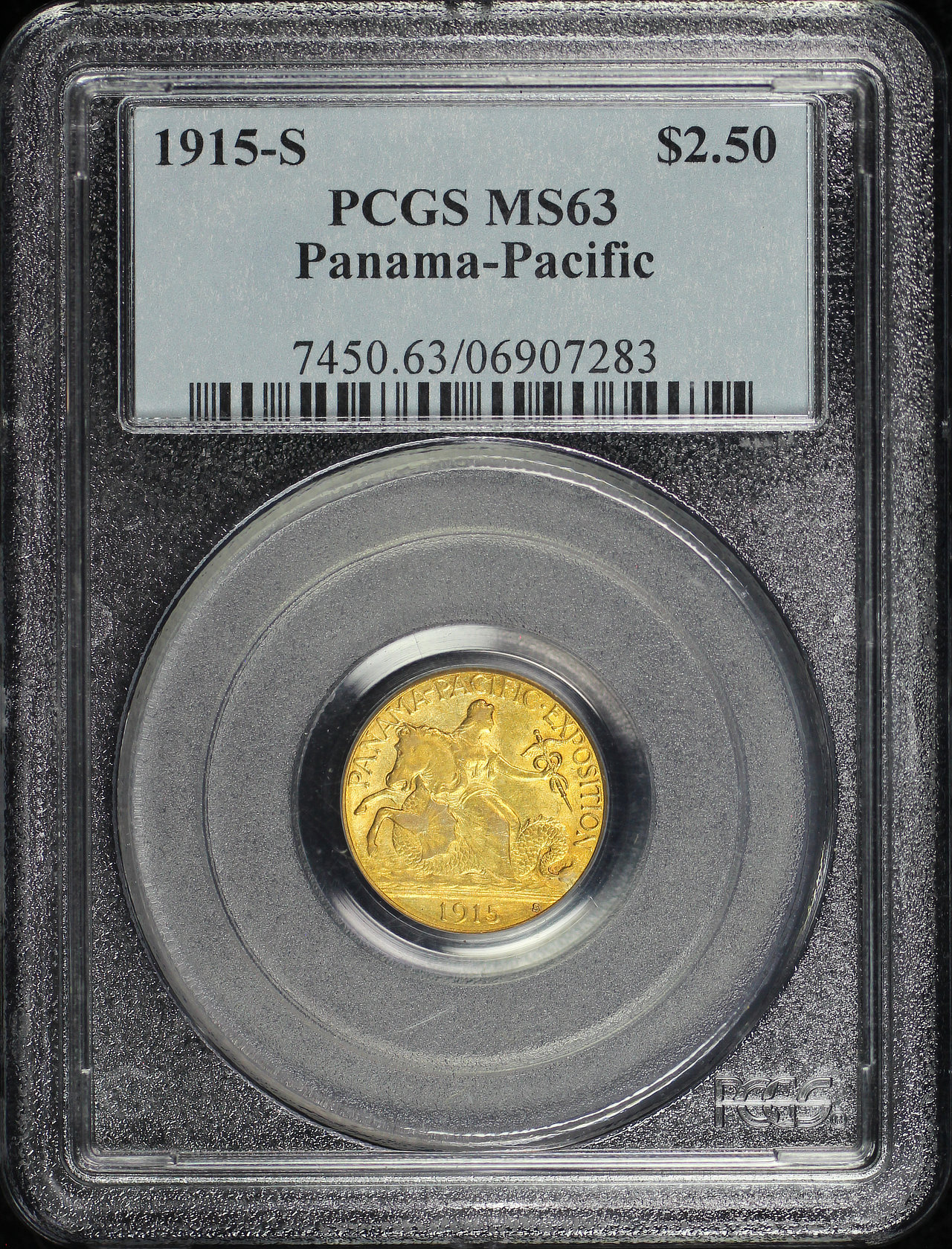 1915-S $2.50 Panama-Pacific Gold Commemorative PCGS MS-63 designed by Charles E. Barber and George T. Morgan.