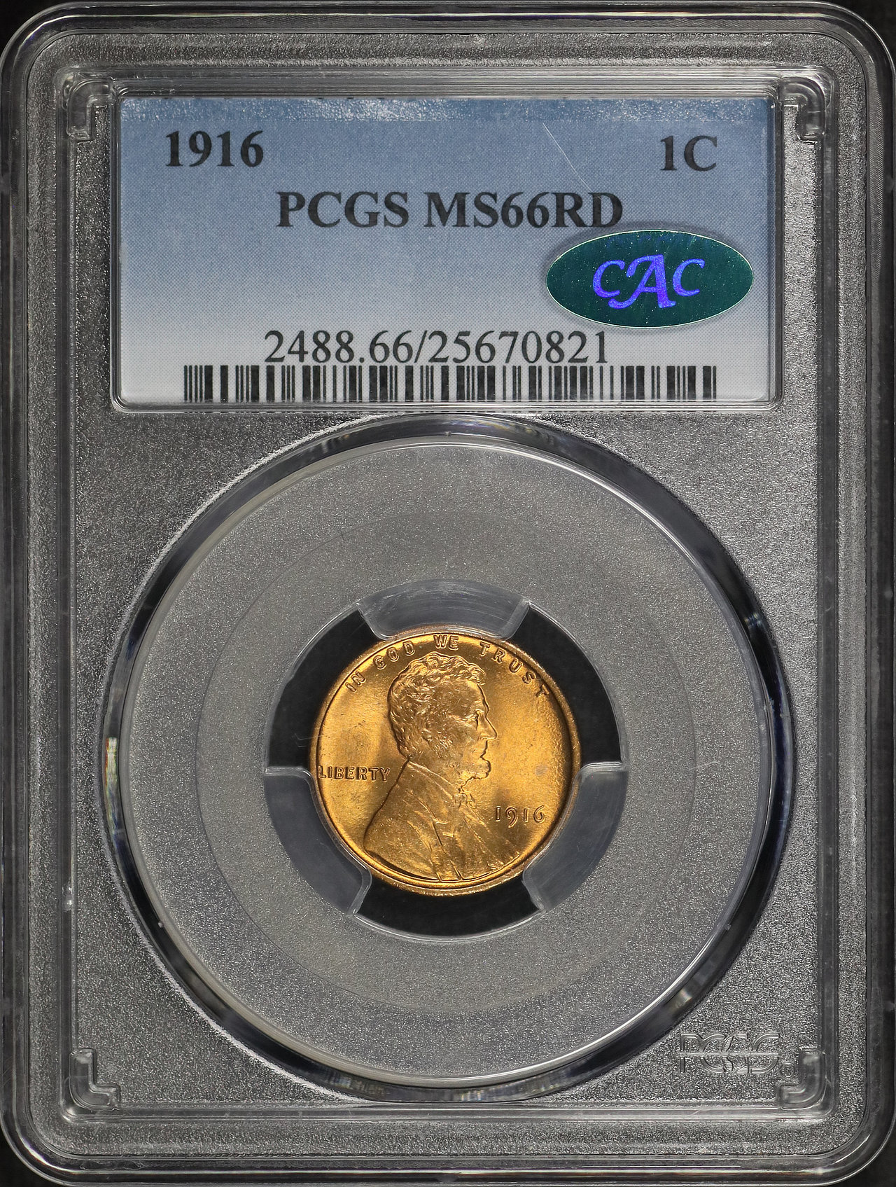 1916 Lincoln Cent Wheat Reverse PCGS MS-66 RD CAC designed by Victor David Brenner.