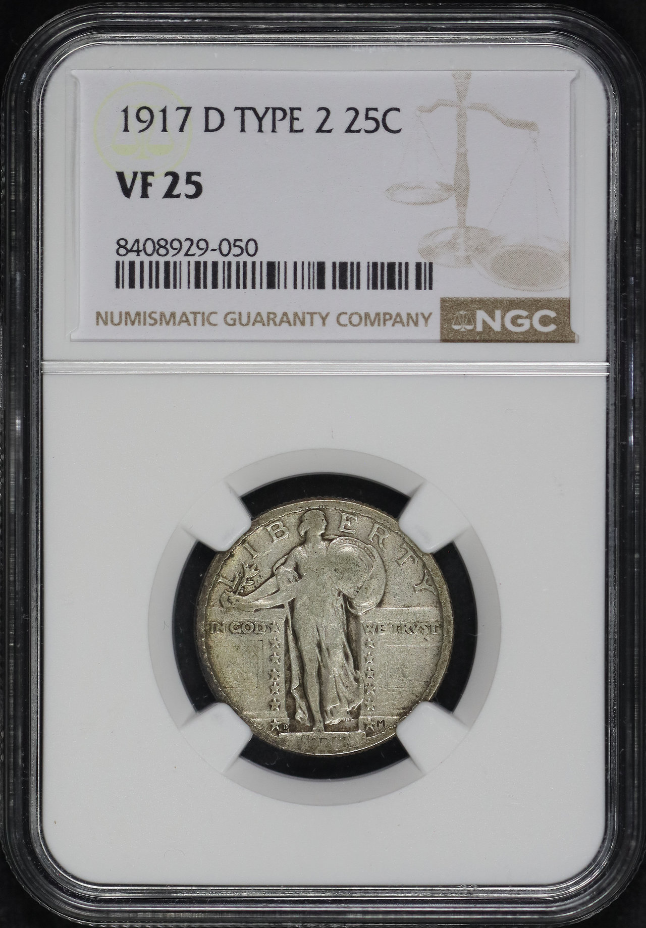 1917-D Standing Liberty Quarter Type 2 NGC VF-25.