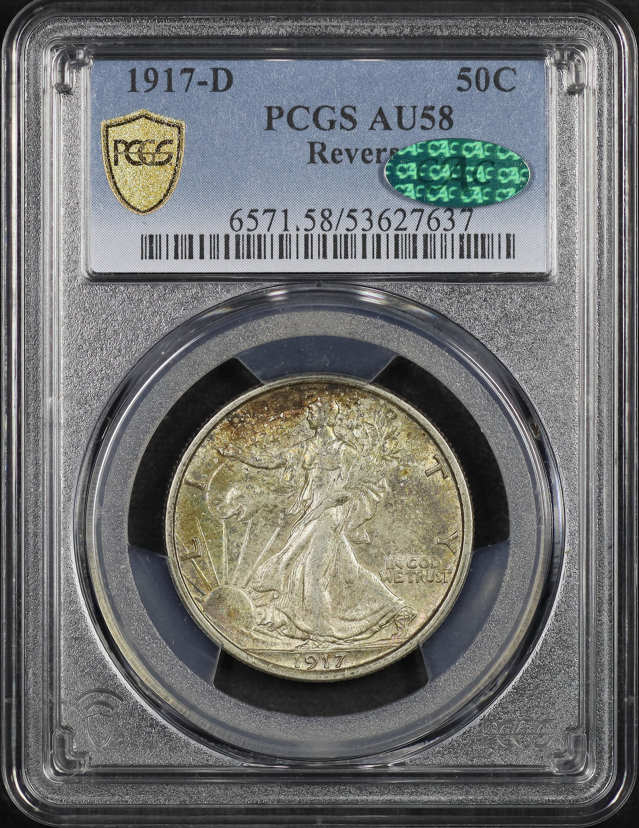 1917-D Walking Liberty Half Dollar Reverse PCGS AU-58 CAC