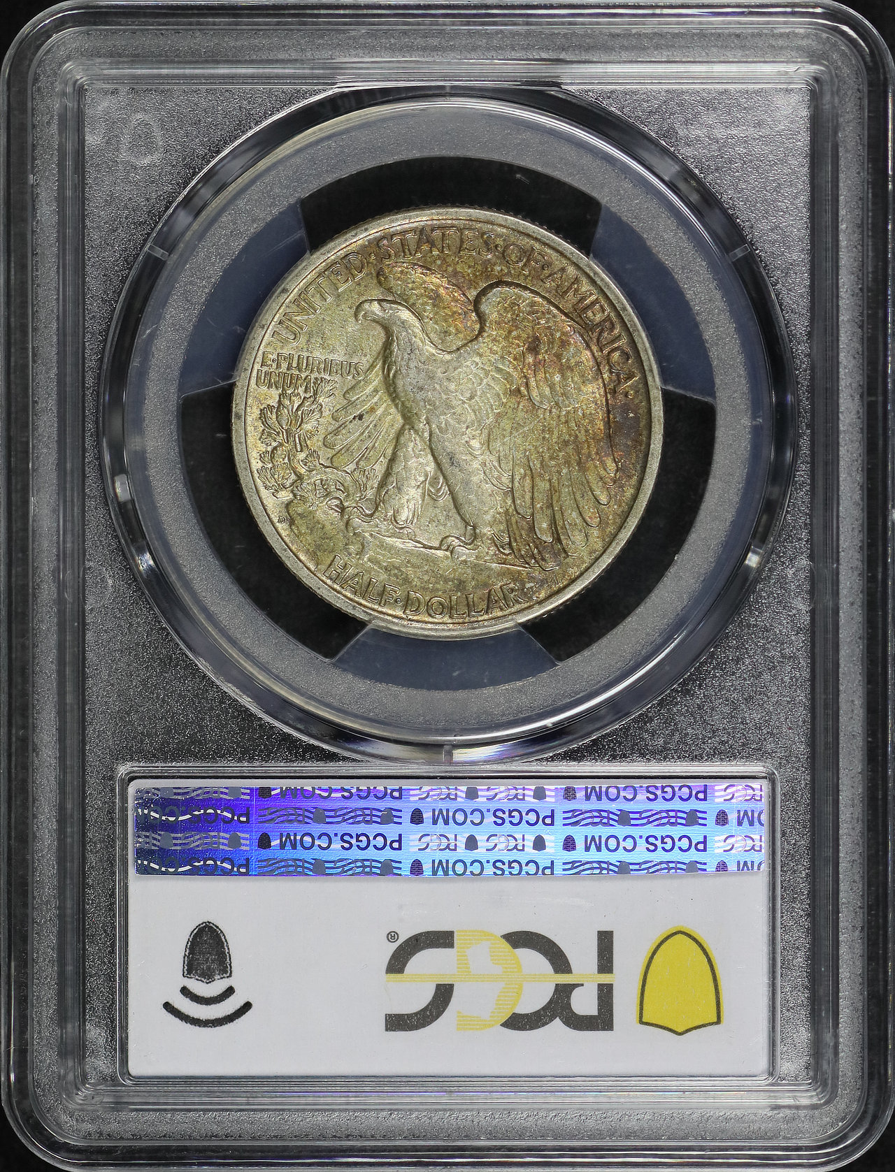 1917-D Walking Liberty Half Dollar Reverse PCGS AU-58 CAC designed by Adolph Alexander Weinman.