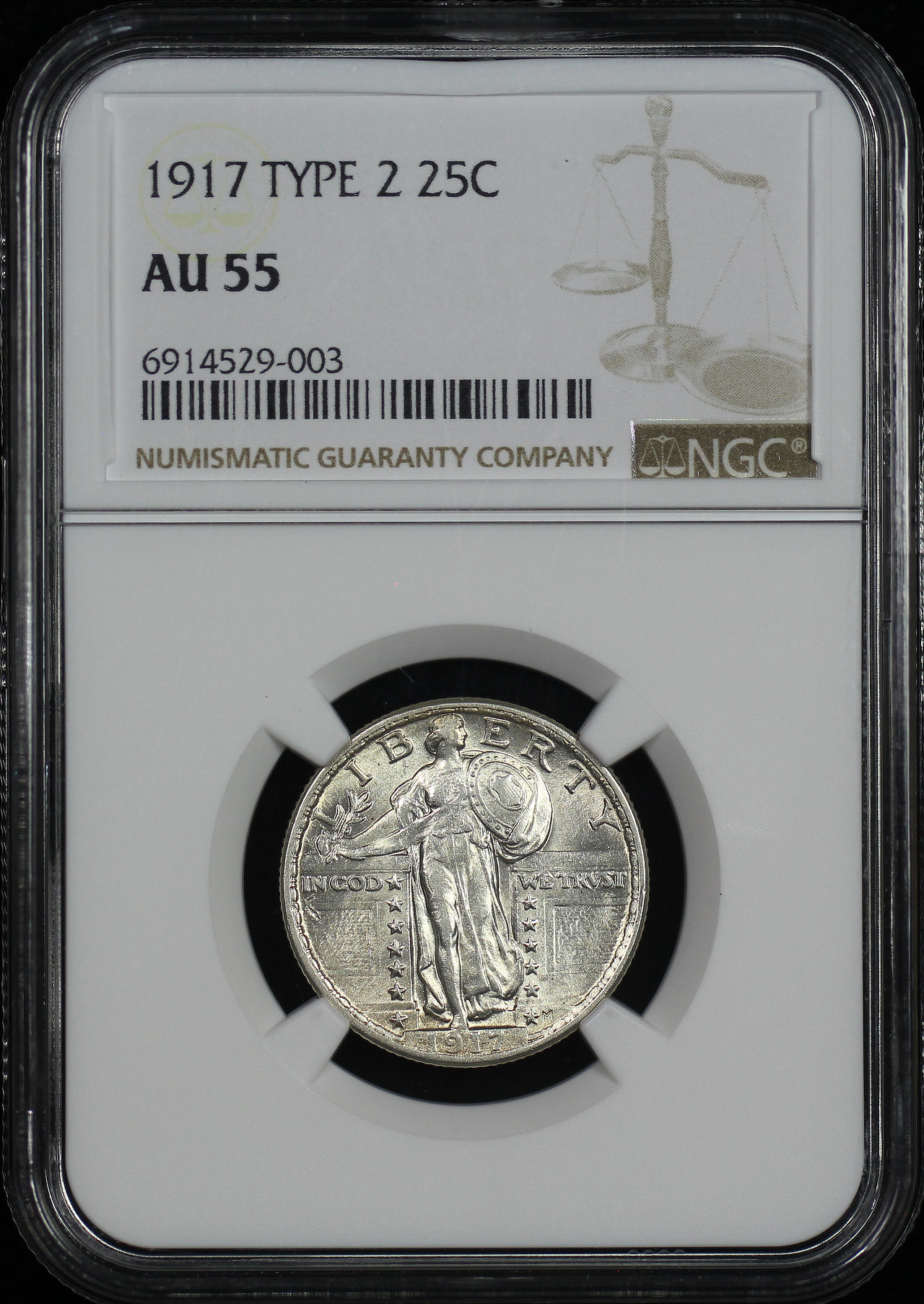 1917 Standing Liberty Quarter Type 2 NGC AU-55