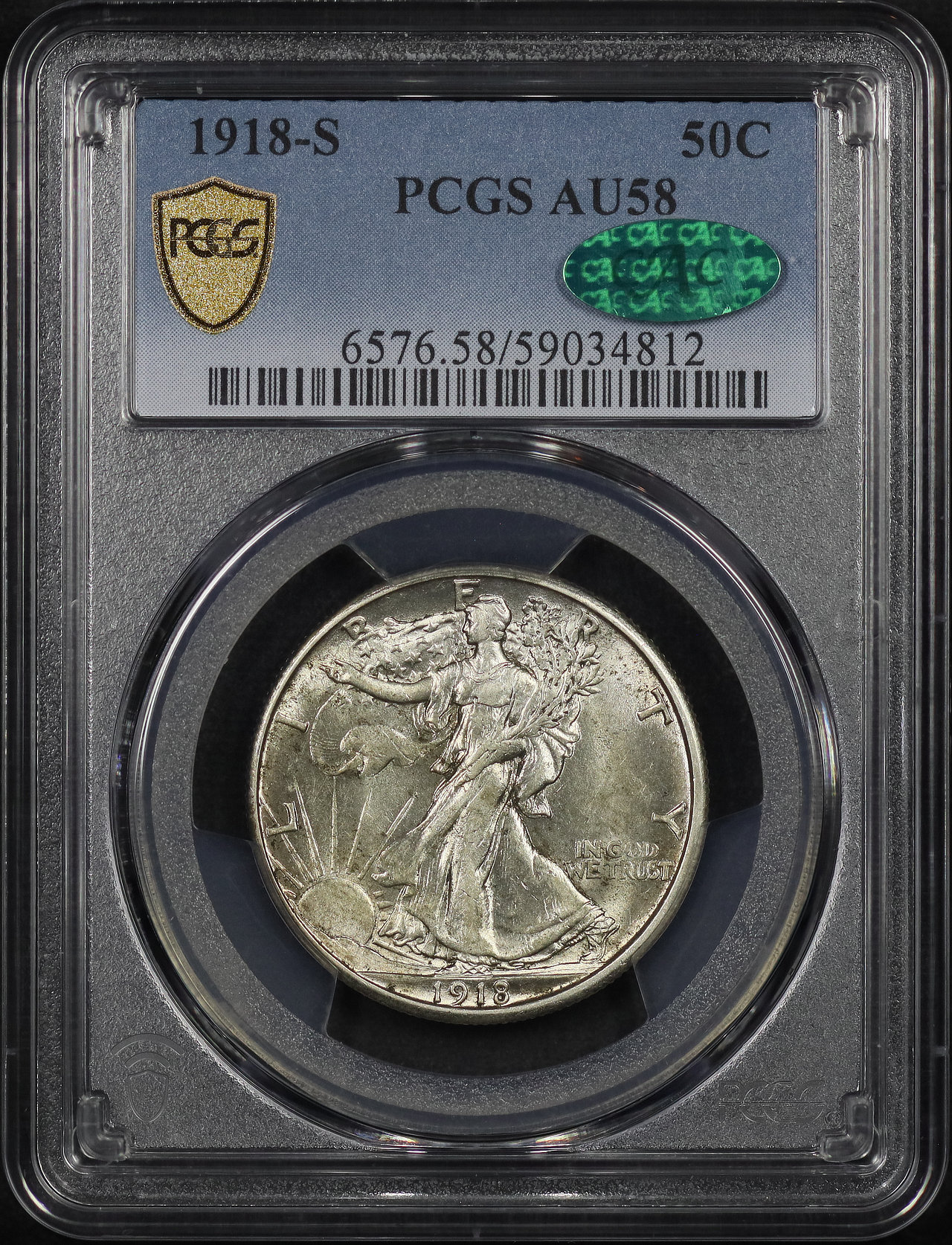 1918-S Walking Liberty Half Dollar PCGS AU-58 CAC