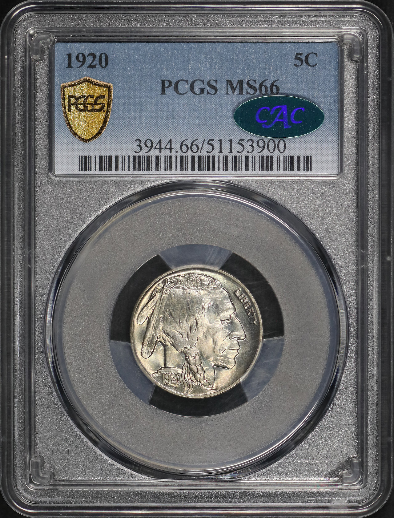 1920 Buffalo Nickel PCGS MS-66 CAC designed by James Earle Fraser.