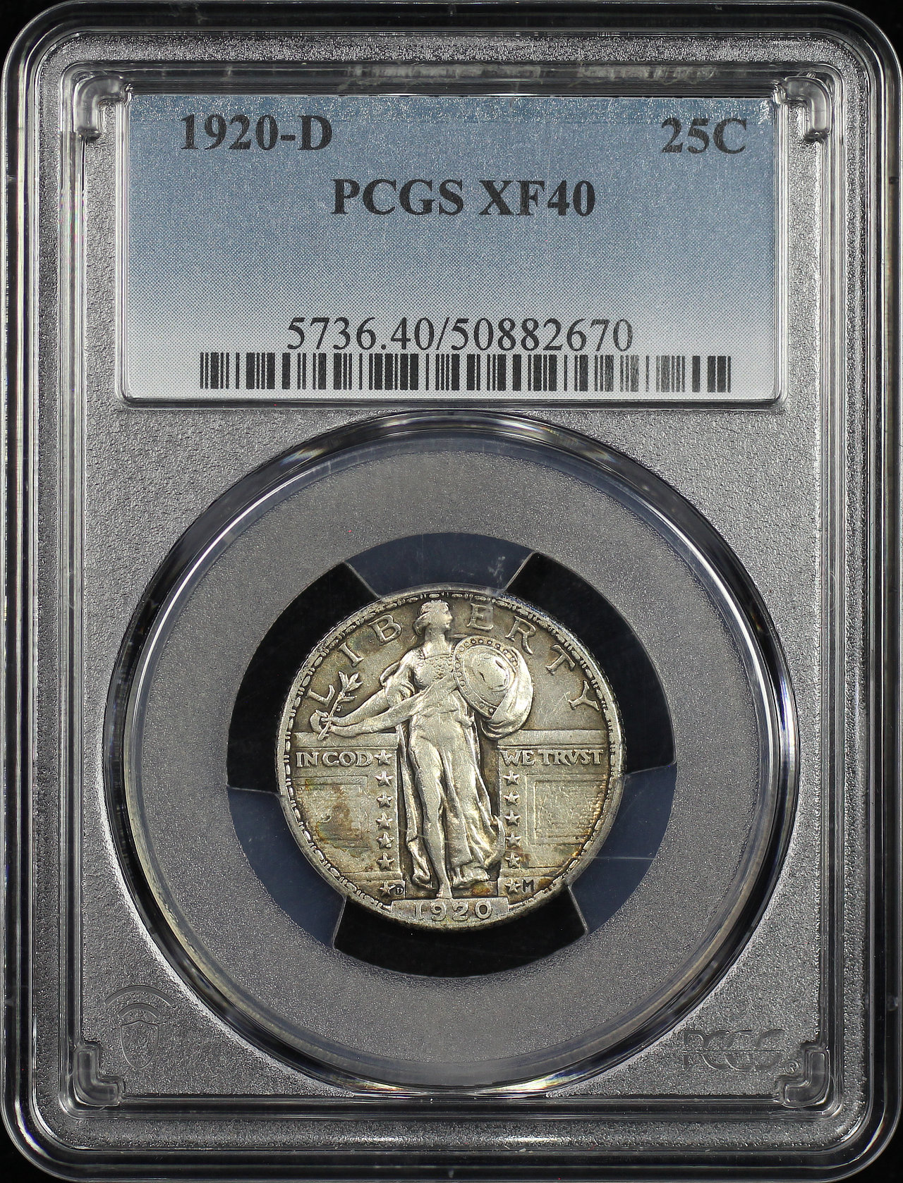 1920-D Standing Liberty Quarter PCGS XF-40 designed by Hermon A. Mac Neil.