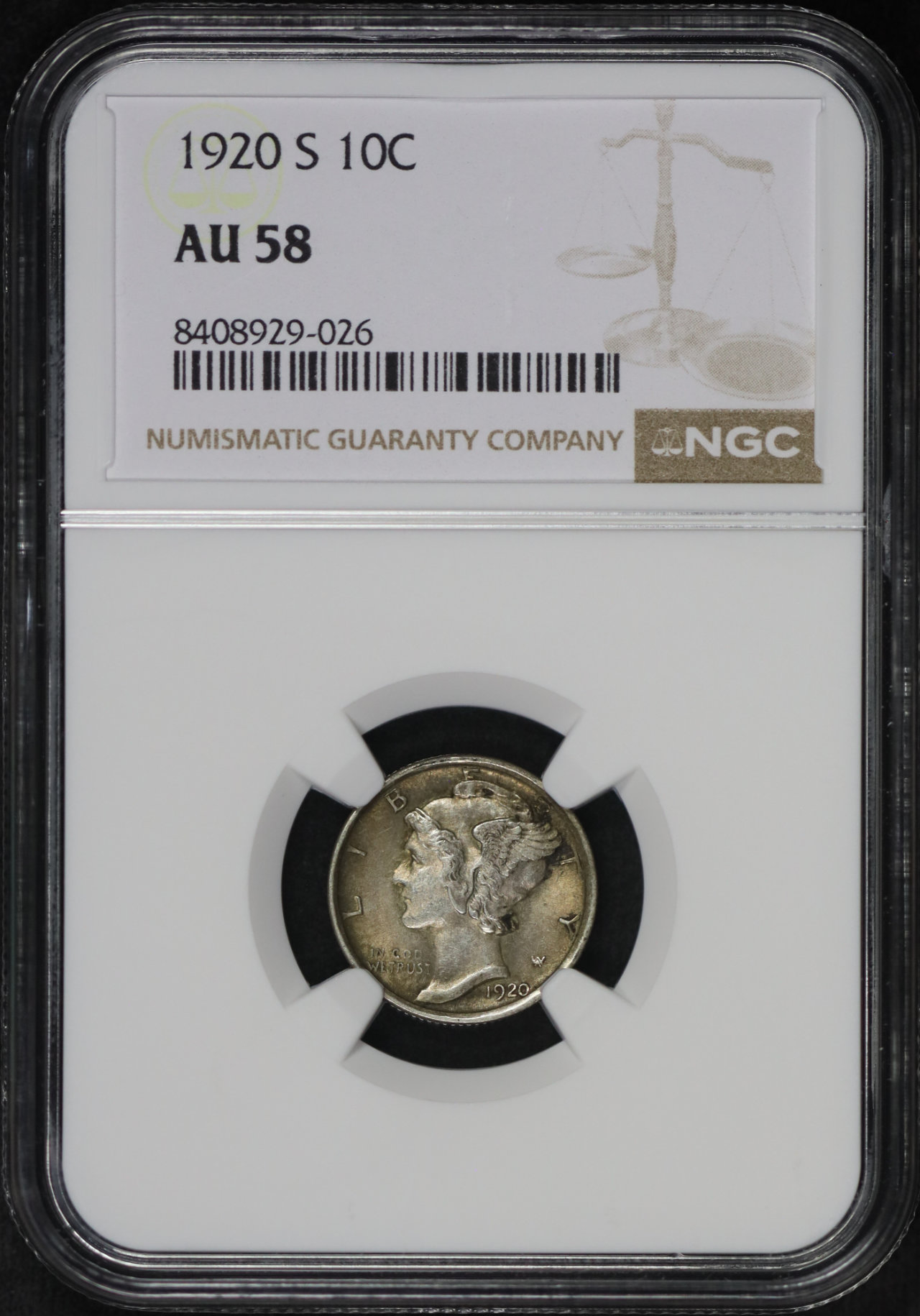 1920-S Mercury Dime NGC AU-58.