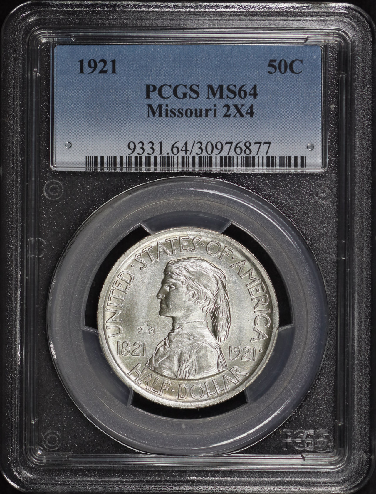 1921 50C Missouri 2X4 Silver Commemorative PCGS MS-64 designed by Robert Aitken.