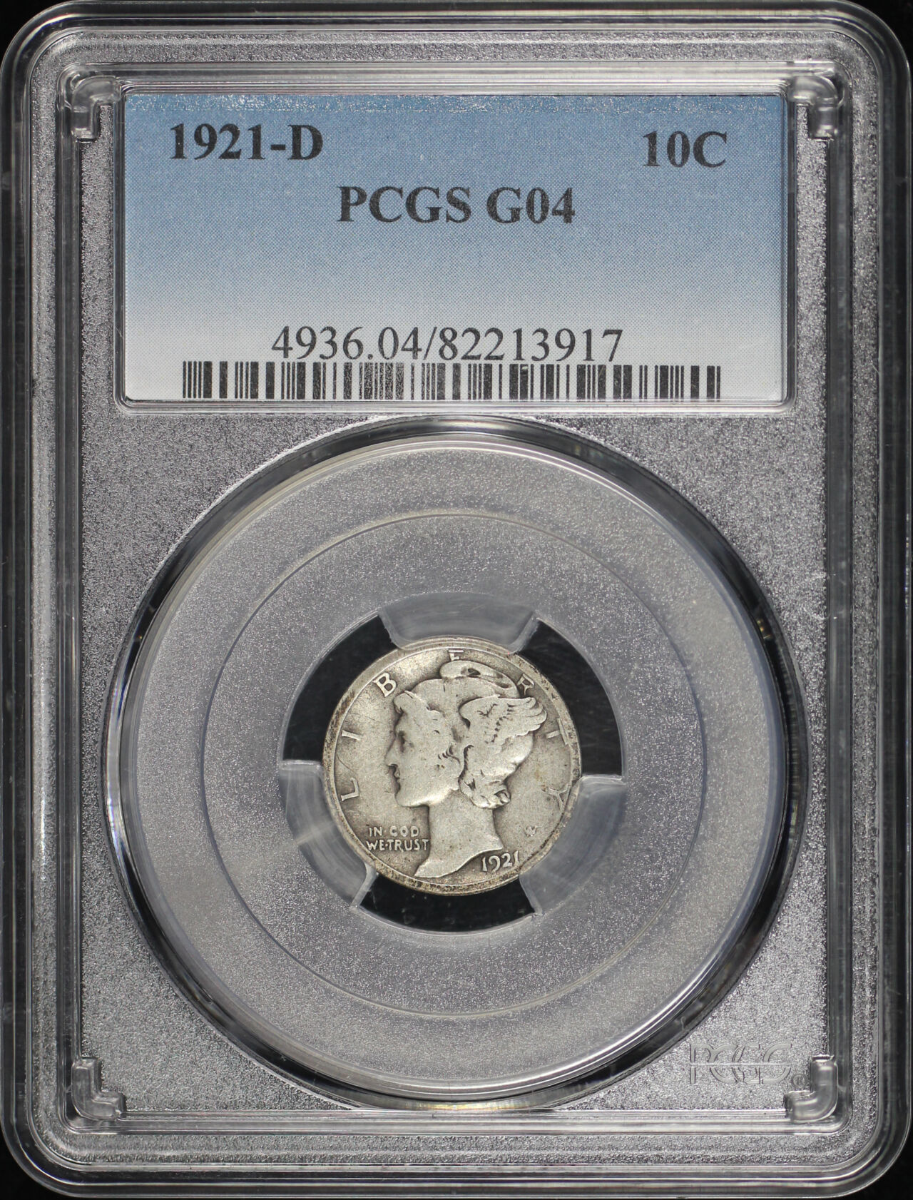 1921-D Mercury Dime PCGS G-04 designed by Adolph Alexander Weinman.