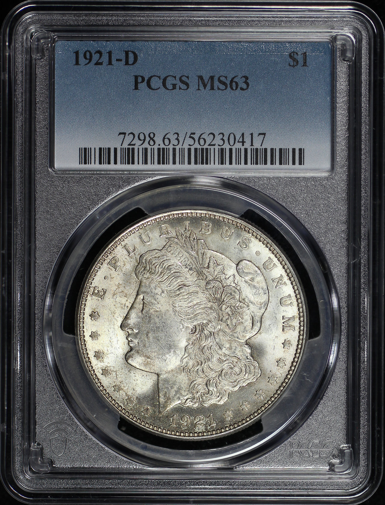 1921-D Morgan Dollar PCGS MS-63 designed by George T. Morgan.