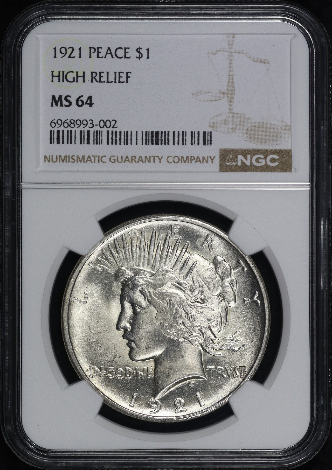 1921 High Relief Peace Dollar NGC MS-64.