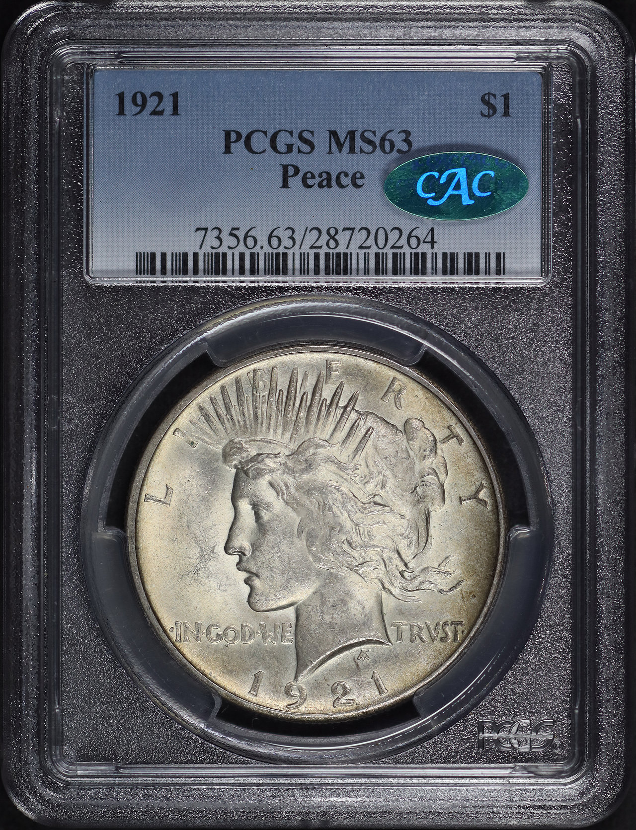 1921 Peace Dollar PCGS MS-63 CAC designed by Anthony de Francisci.