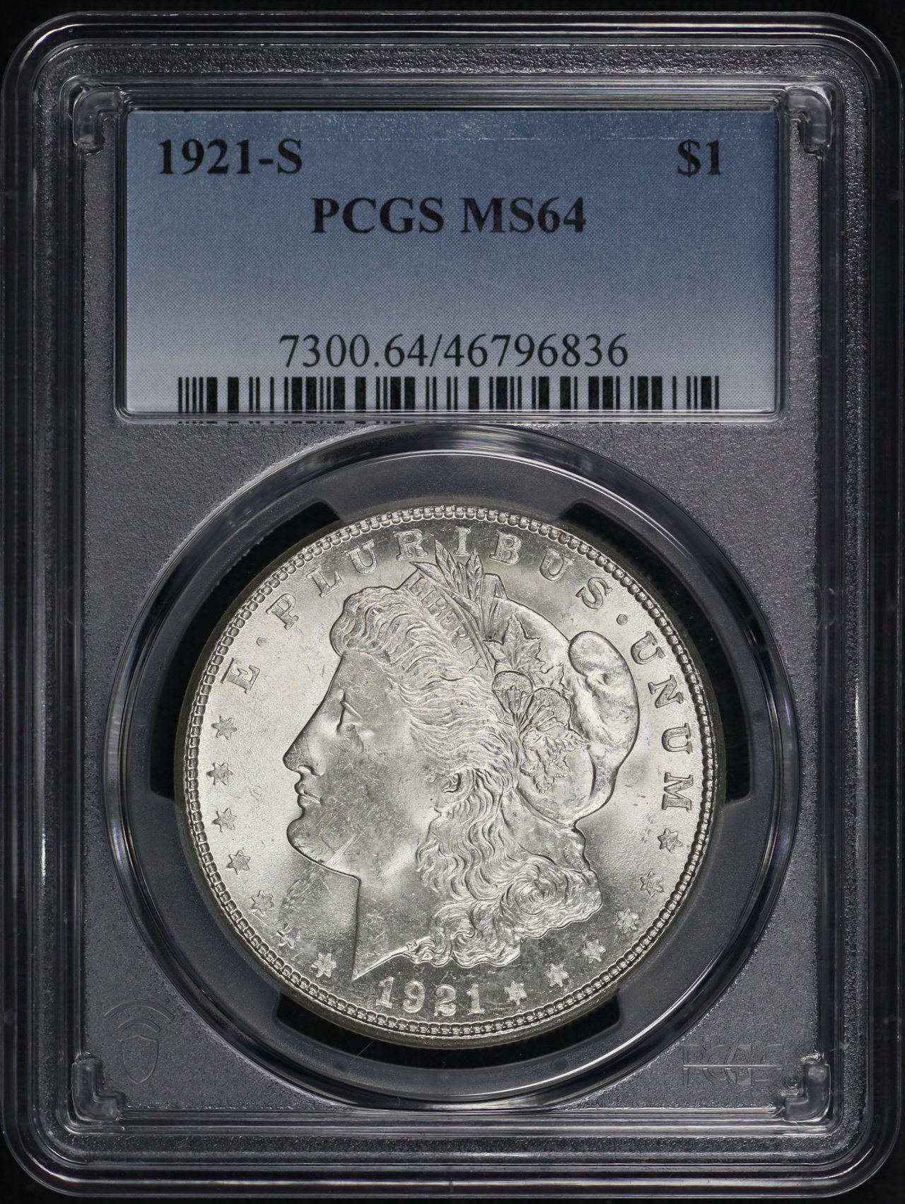 1921-S Morgan Dollar PCGS MS-64 designed by George T. Morgan.