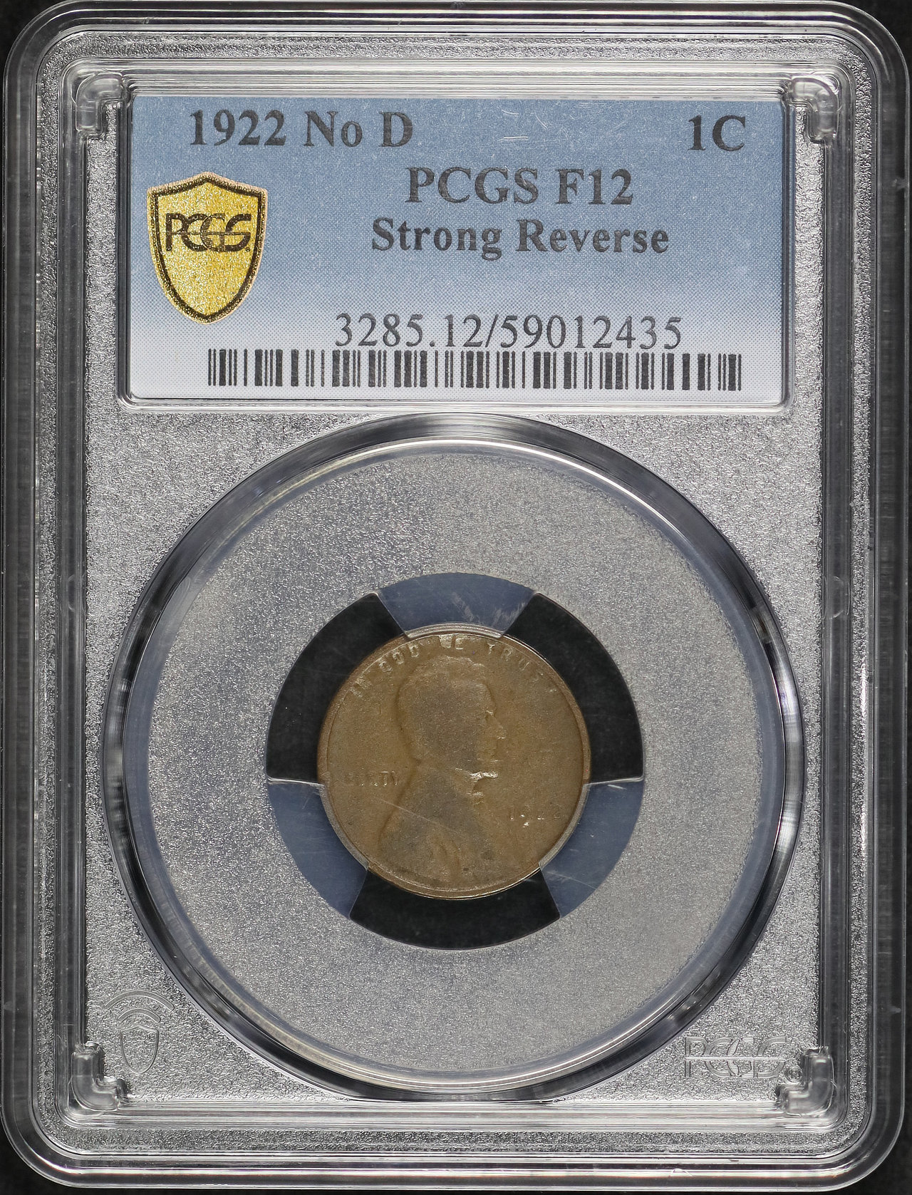 1922-D No D Lincoln Cent Wheat Reverse Strong Reverse PCGS F-12 BN designed by Victor David Brenner.