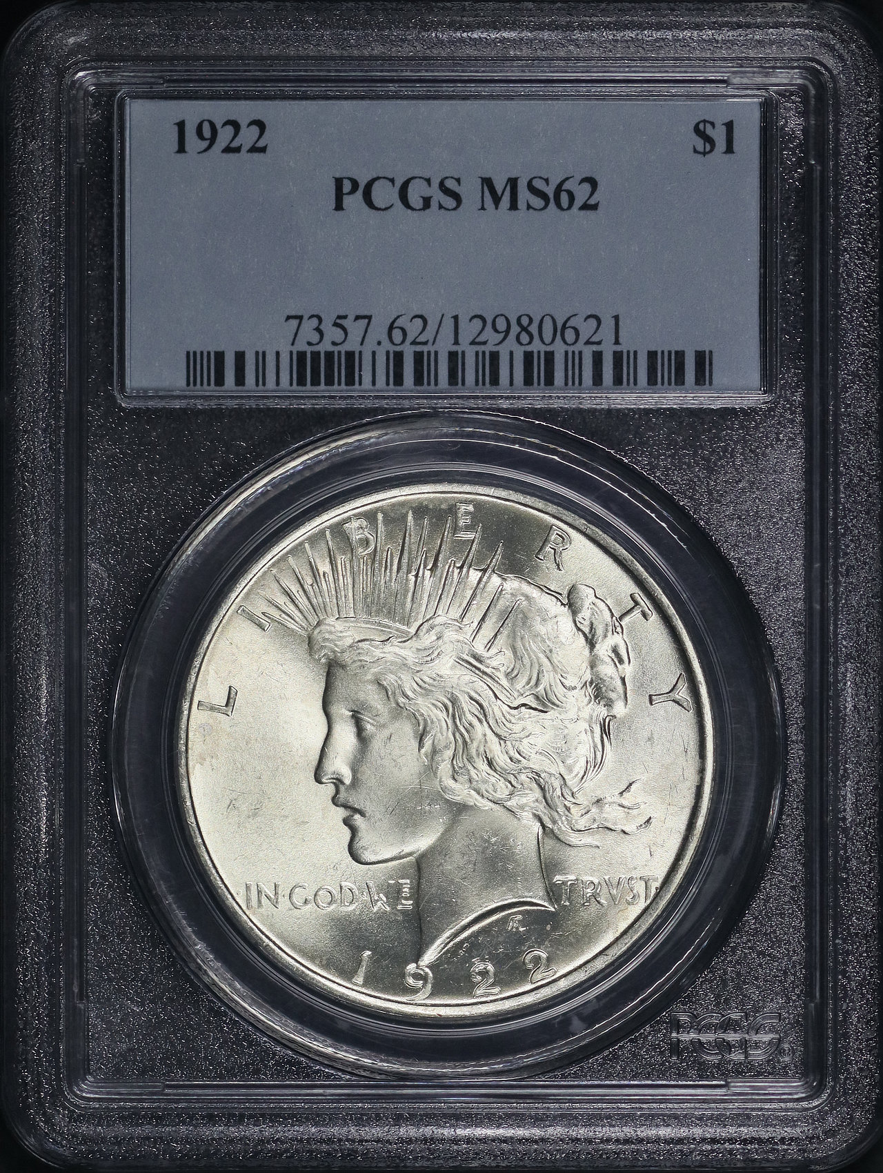 1922 Peace Dollar PCGS MS-62 designed by Anthony de Francisci.