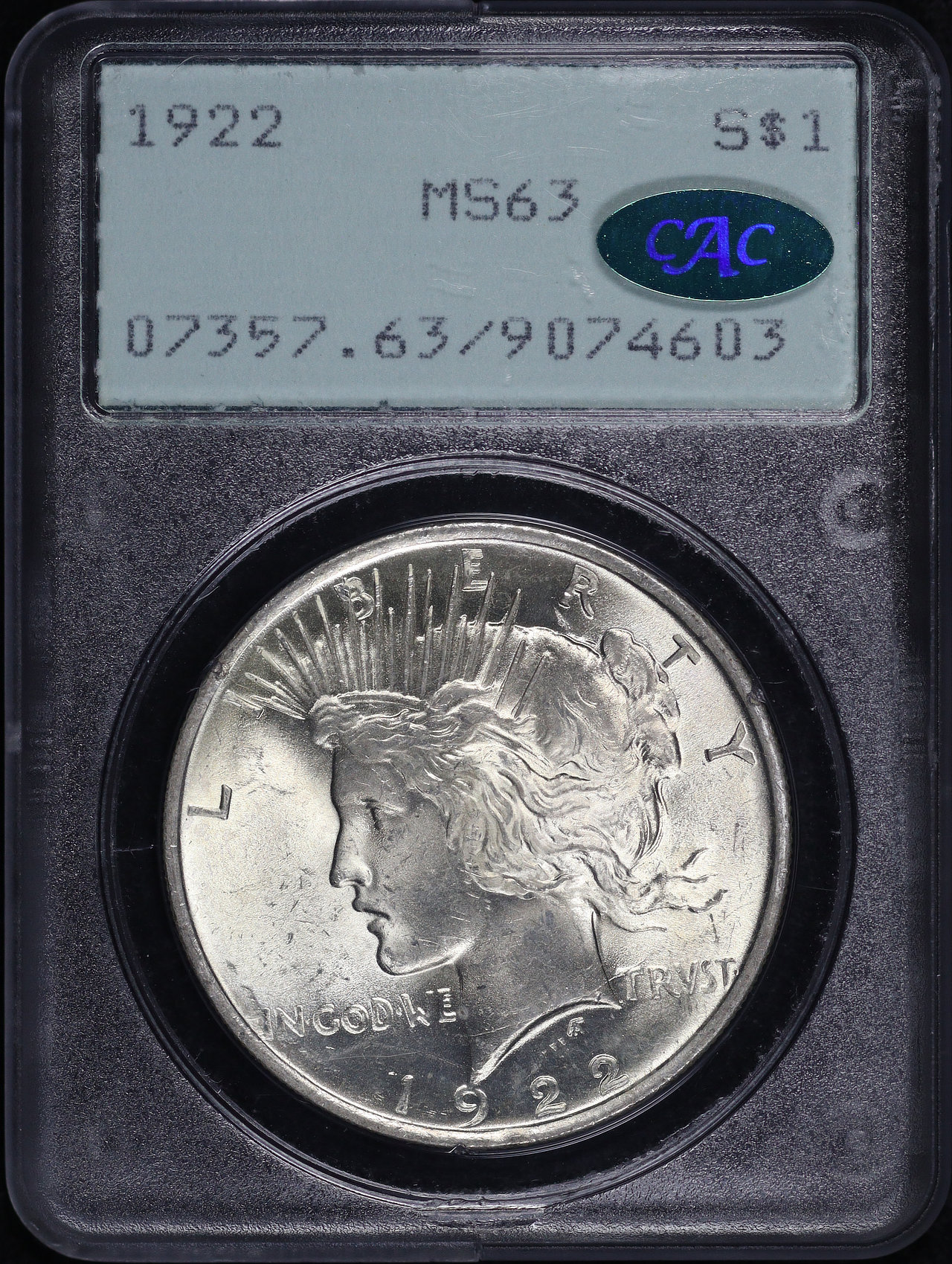 1922 Peace Dollar PCGS MS-63 CAC Old Green Rattler Holder