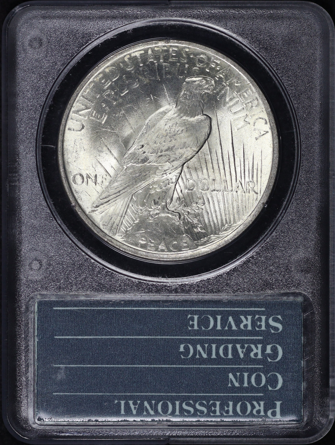 1922 Peace Dollar PCGS MS-63 CAC Old Green Rattler Holder designed by Anthony de Francisci.