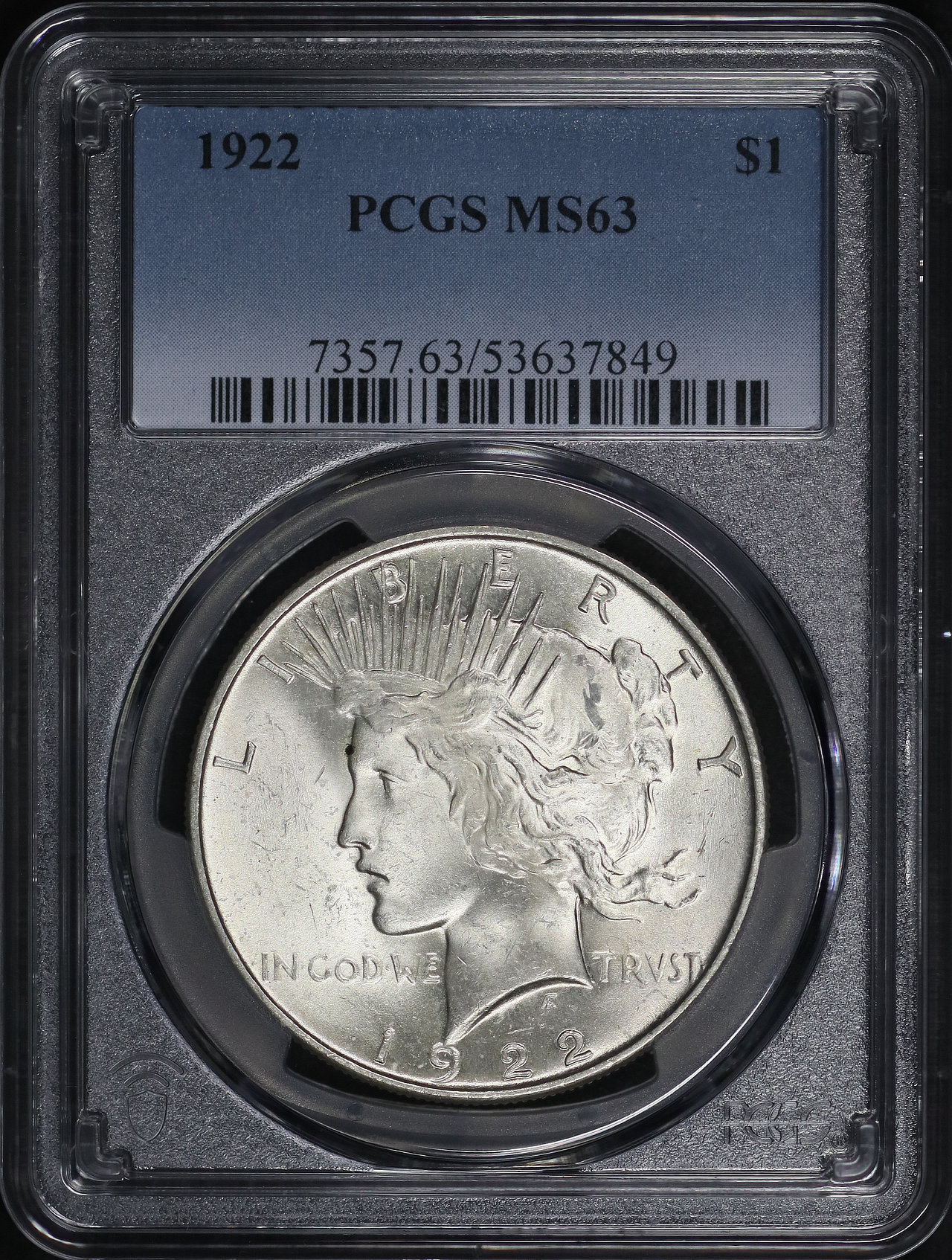 1922 Peace Dollar PCGS MS-63 designed by Anthony de Francisci.