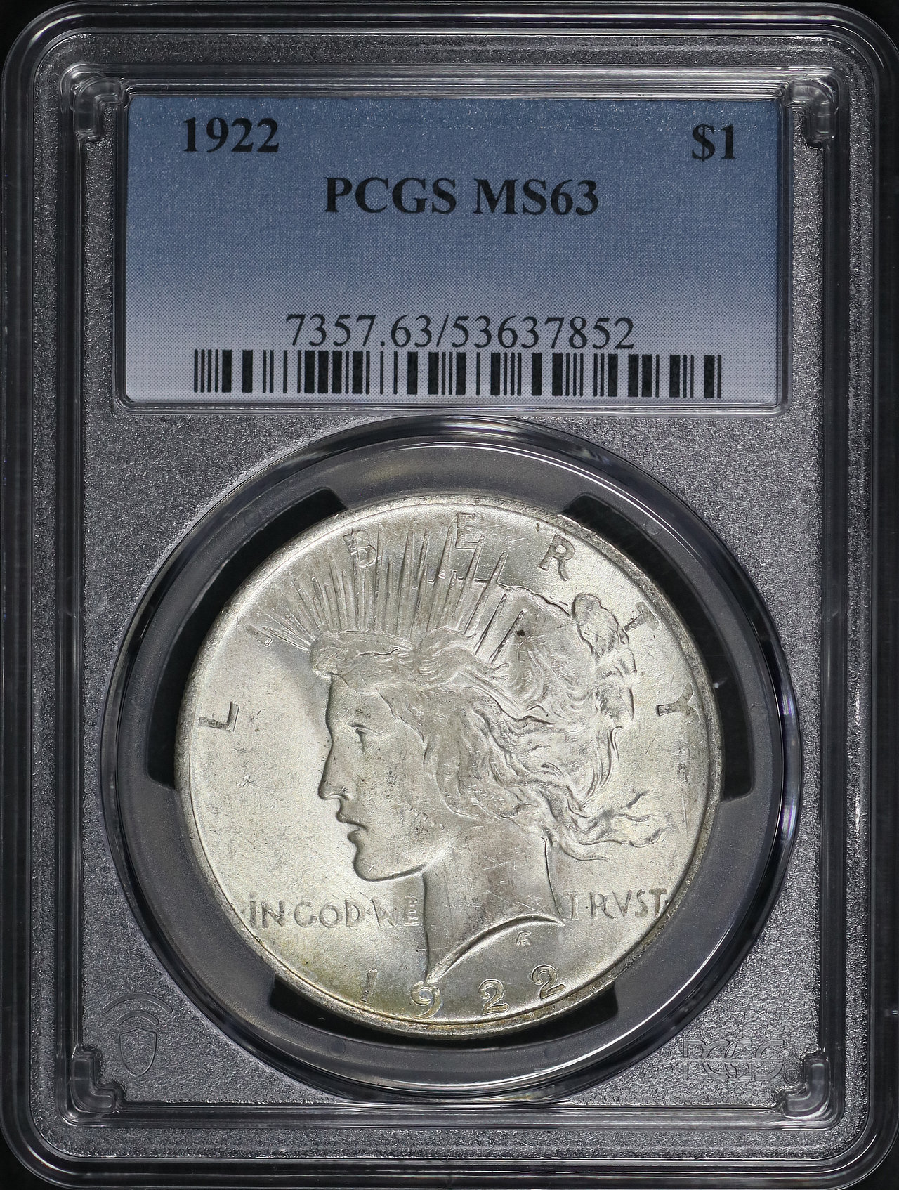 1922 Peace Dollar PCGS MS-63 designed by Anthony de Francisci.