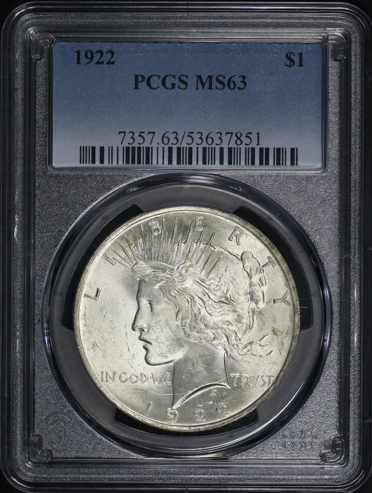 1922 Peace Dollar PCGS MS-63 designed by Anthony de Francisci.
