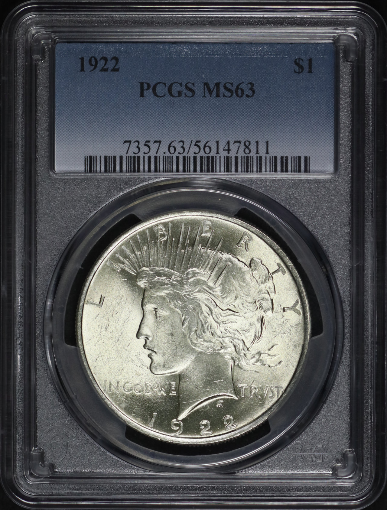 1922 Peace Dollar PCGS MS-63 designed by Anthony de Francisci.