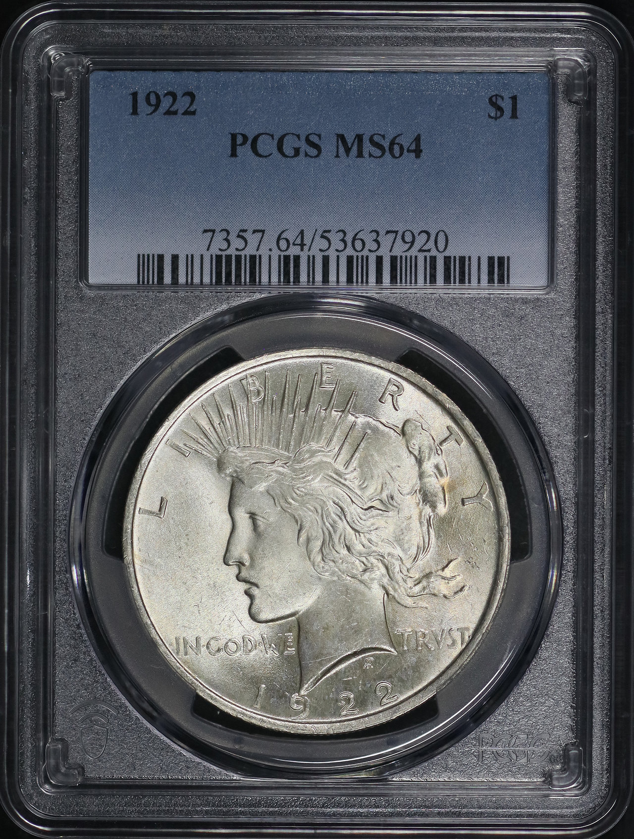 1922 Peace Dollar PCGS MS-64 designed by Anthony de Francisci.