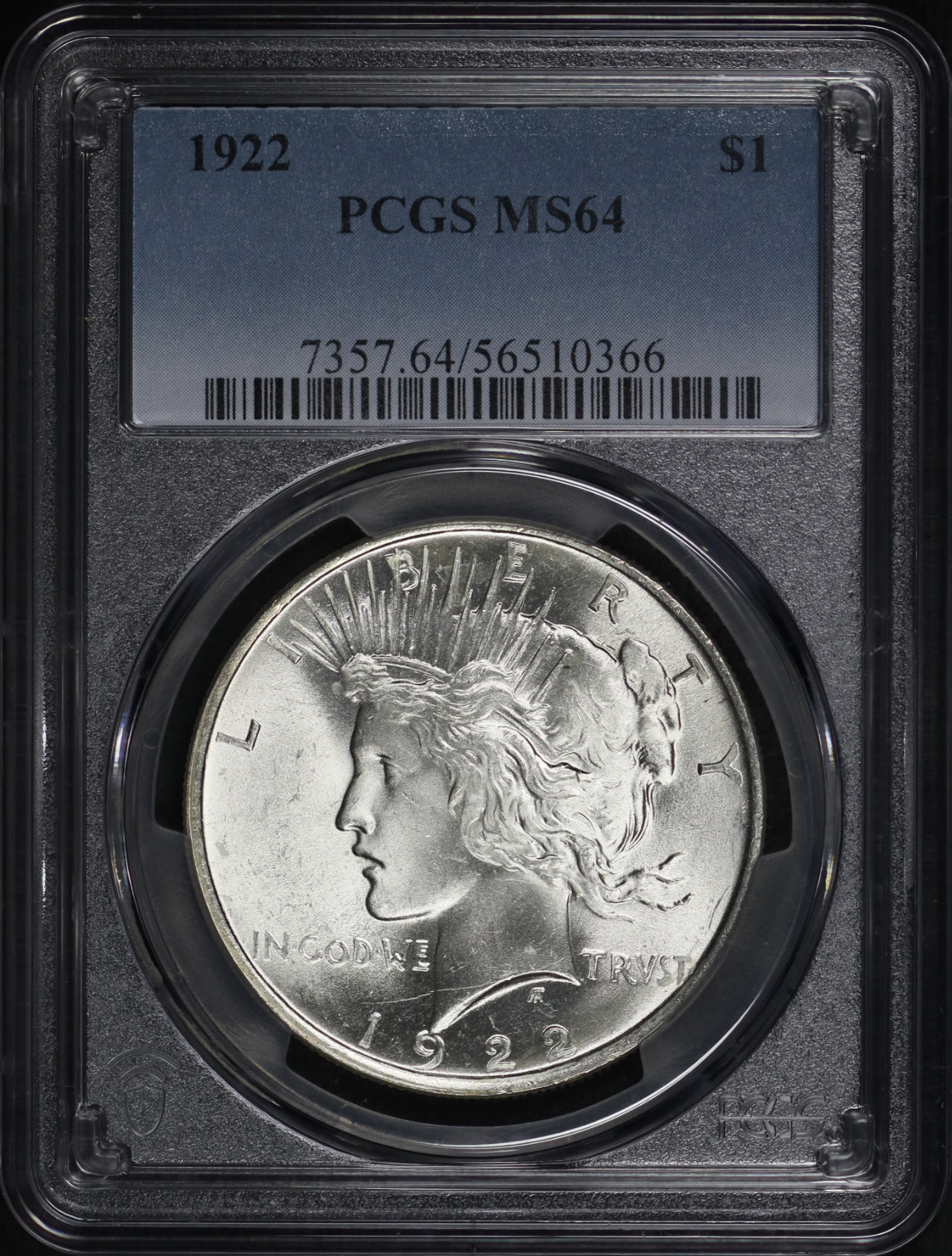 1922 Peace Dollar PCGS MS-64 designed by Anthony de Francisci.