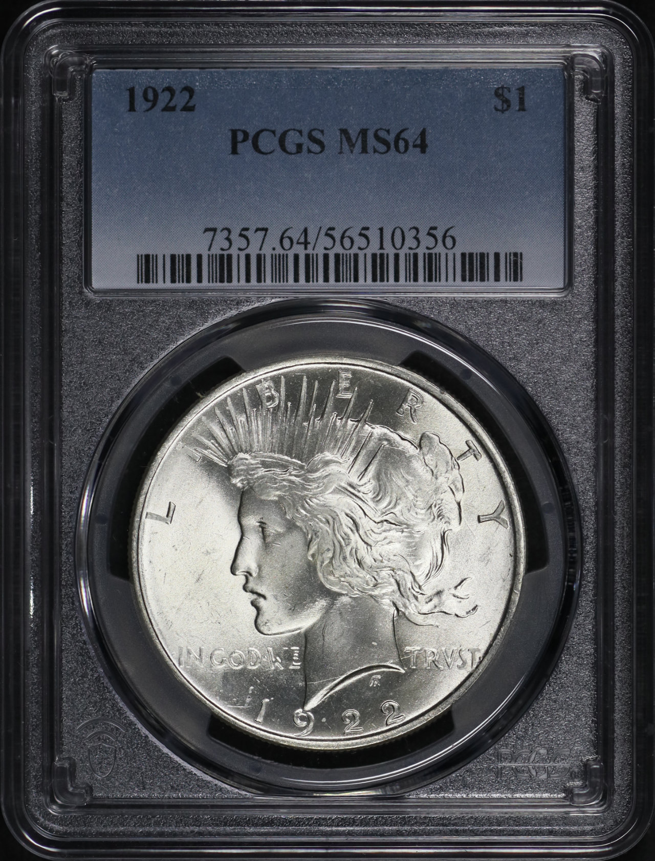 1922 Peace Dollar PCGS MS-64 designed by Anthony de Francisci.
