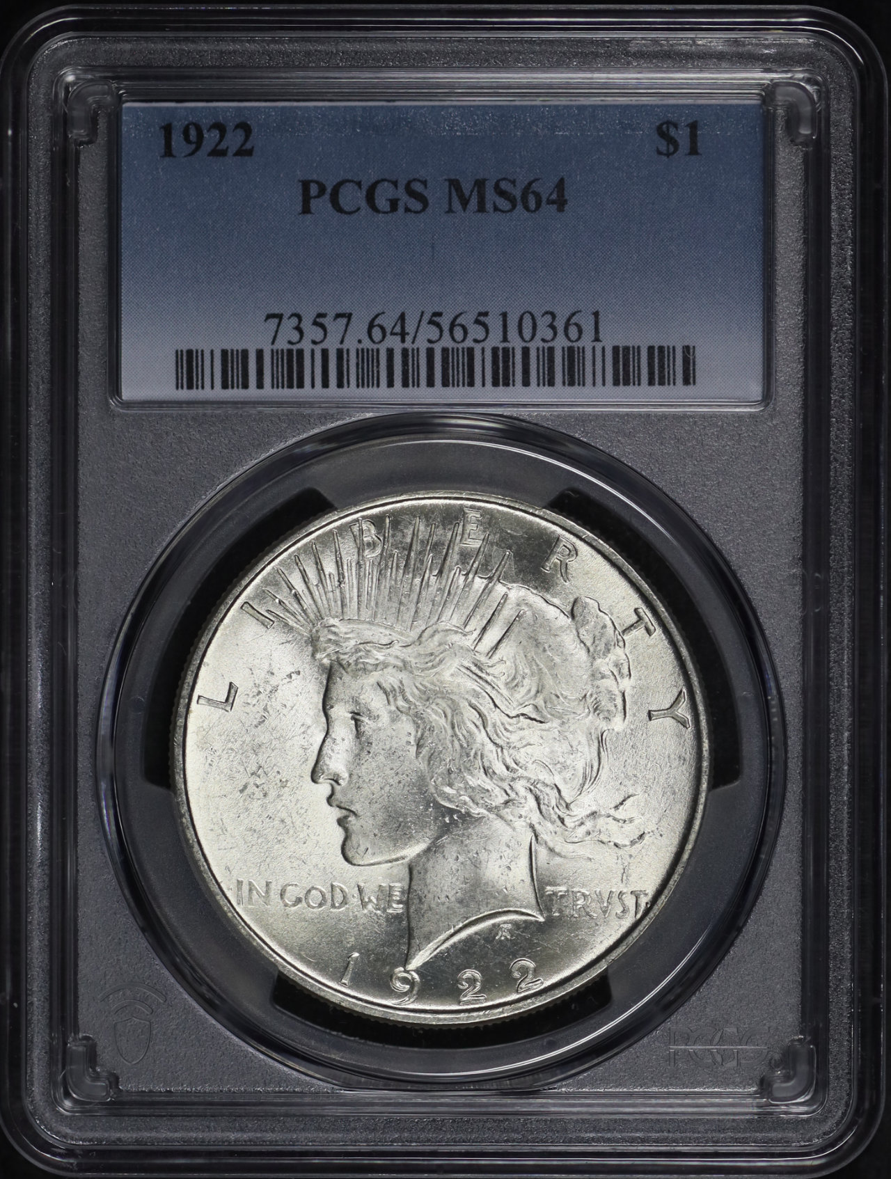 1922 Peace Dollar PCGS MS-64 designed by Anthony de Francisci.