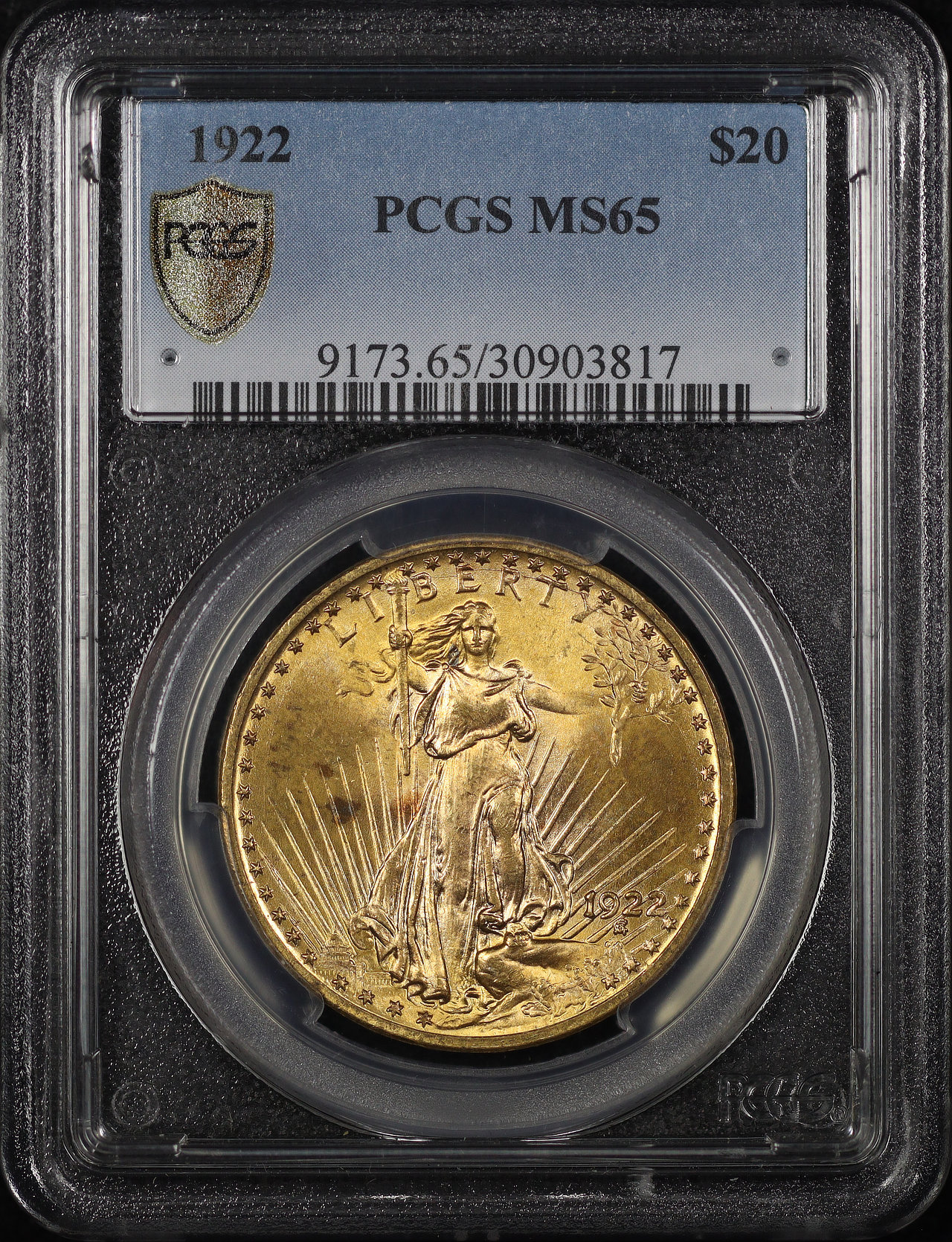1922 St. Gaudens $20 PCGS MS-65 designed by Augustus Saint Gaudens.