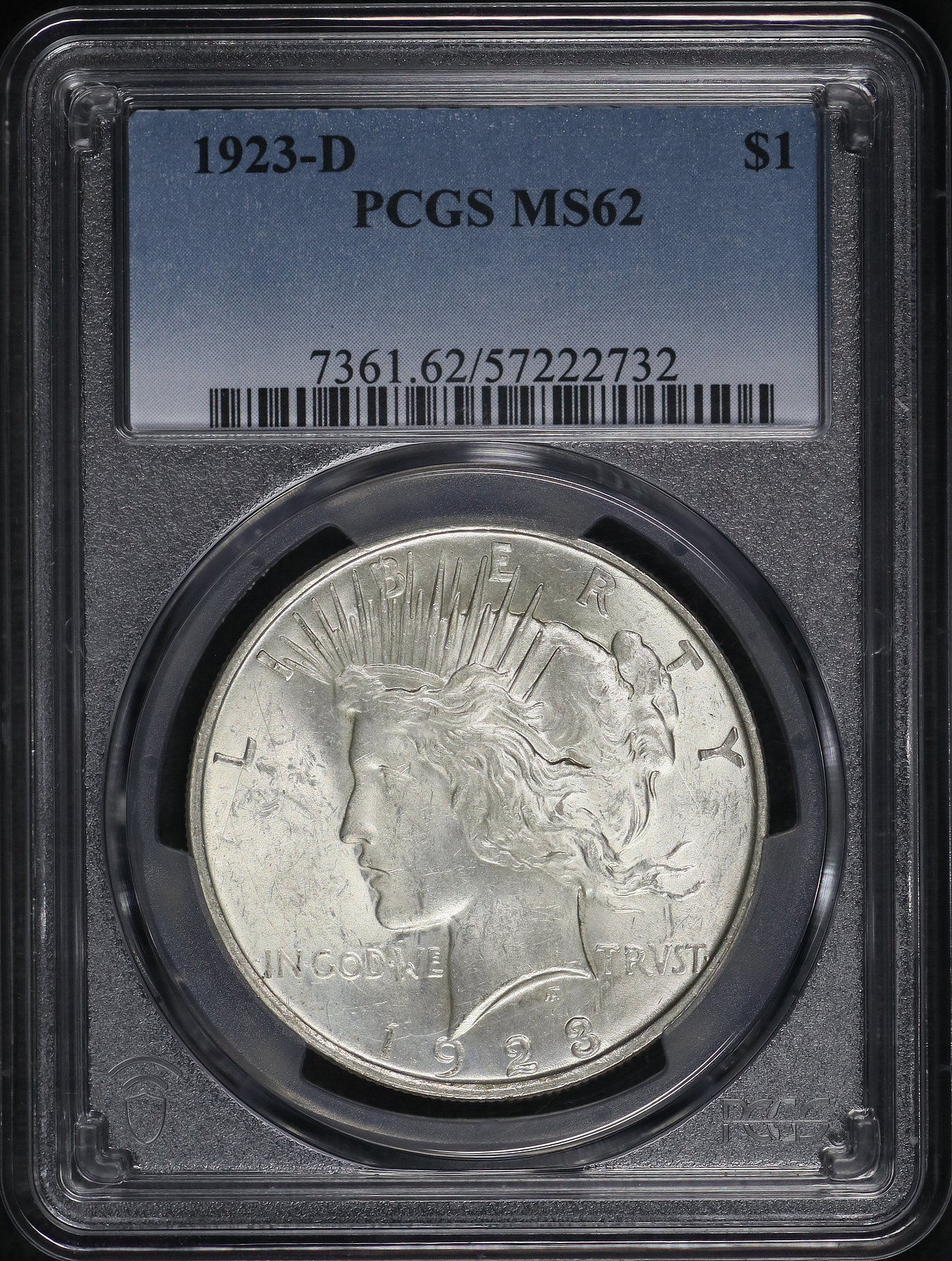 1923-D Peace Dollar PCGS MS-62 designed by Anthony de Francisci.