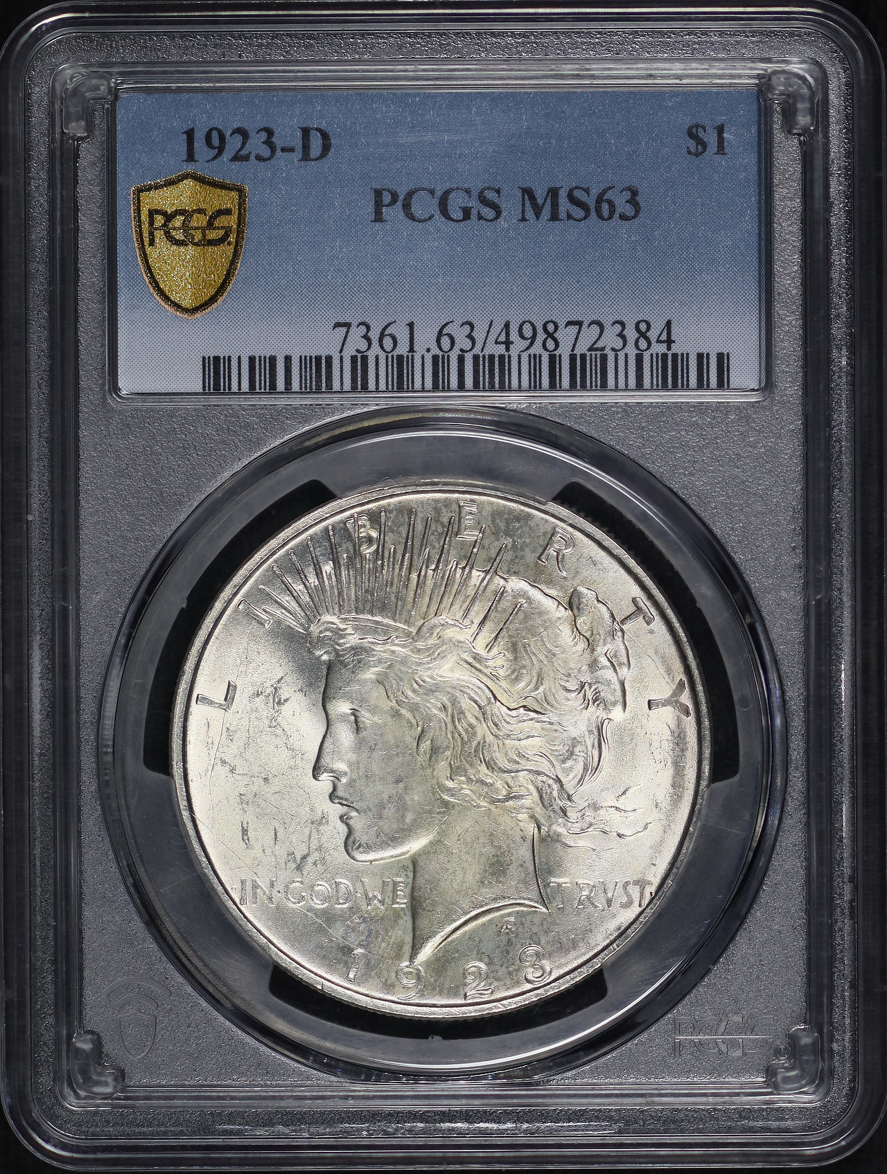 1923-D Peace Dollar PCGS MS-63 designed by Anthony de Francisci.