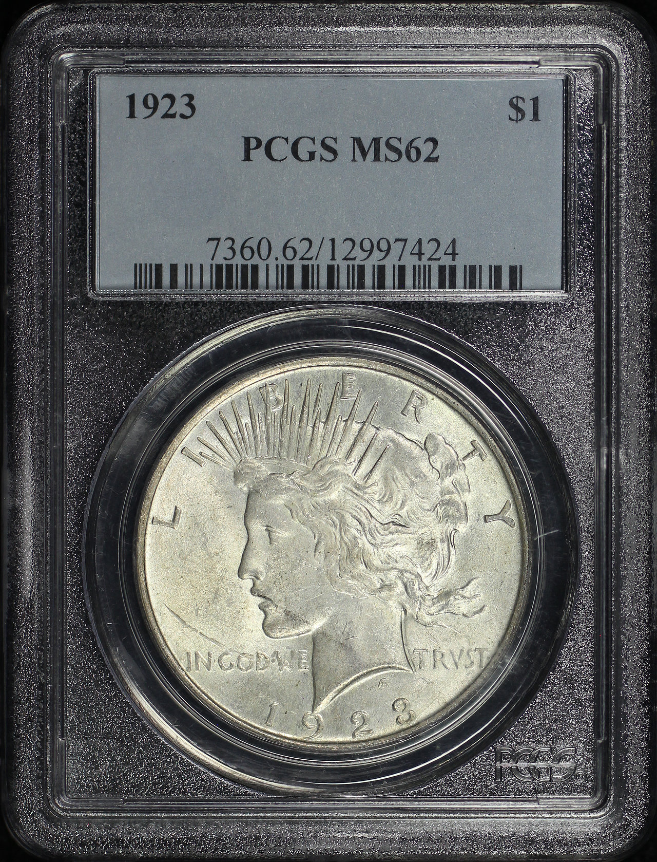 1923 Peace Dollar PCGS MS-62 designed by Anthony de Francisci.