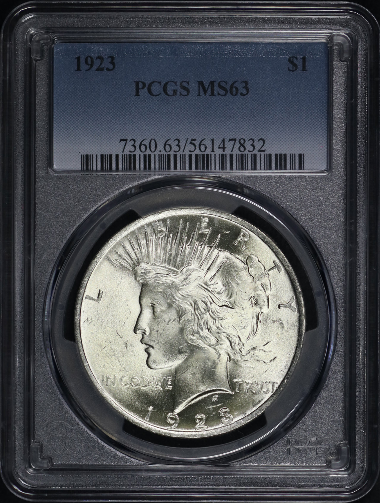 1923 Peace Dollar PCGS MS-63 designed by Anthony de Francisci.