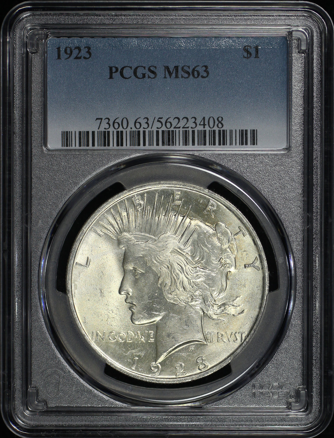 1923 Peace Dollar PCGS MS-63 designed by Anthony de Francisci.