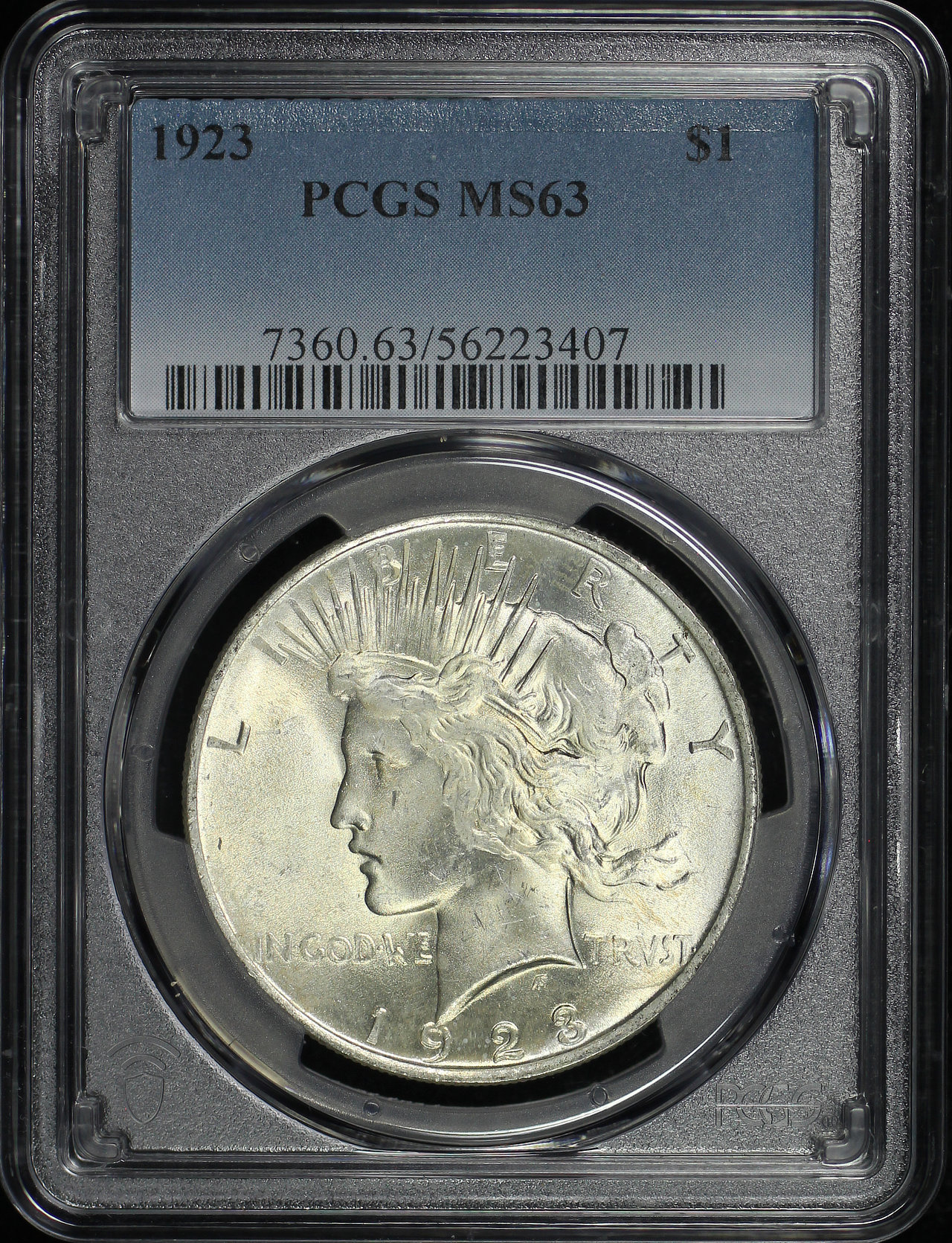1923 Peace Dollar PCGS MS-63 designed by Anthony de Francisci.