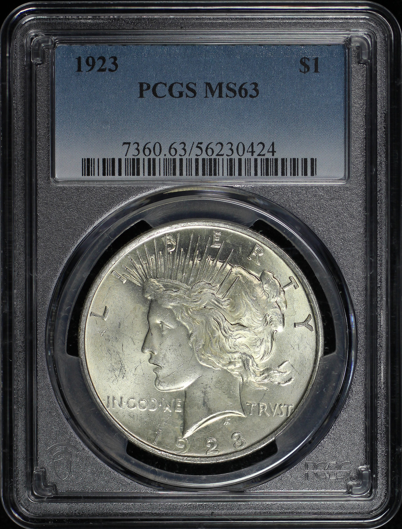 1923 Peace Dollar PCGS MS-63 designed by Anthony de Francisci.