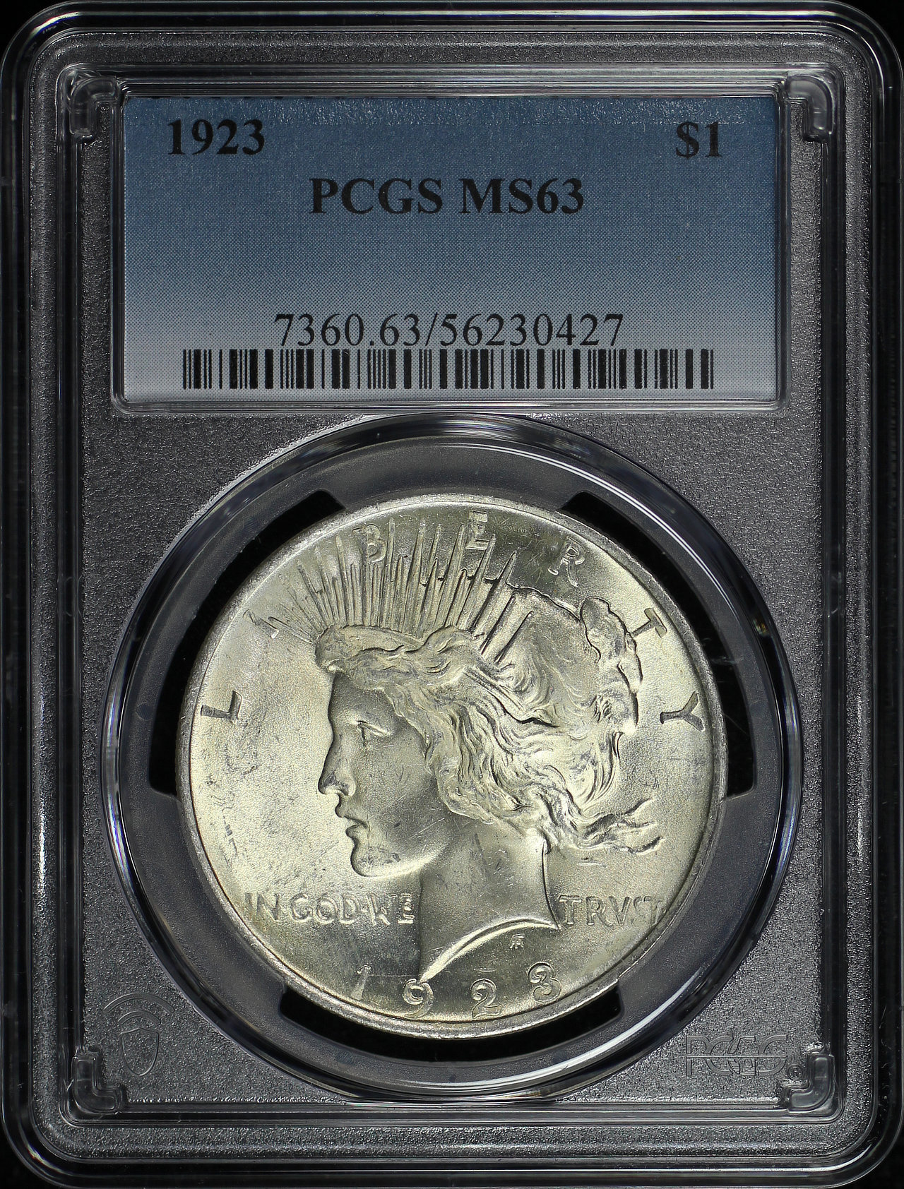 1923 Peace Dollar PCGS MS-63 designed by Anthony de Francisci.
