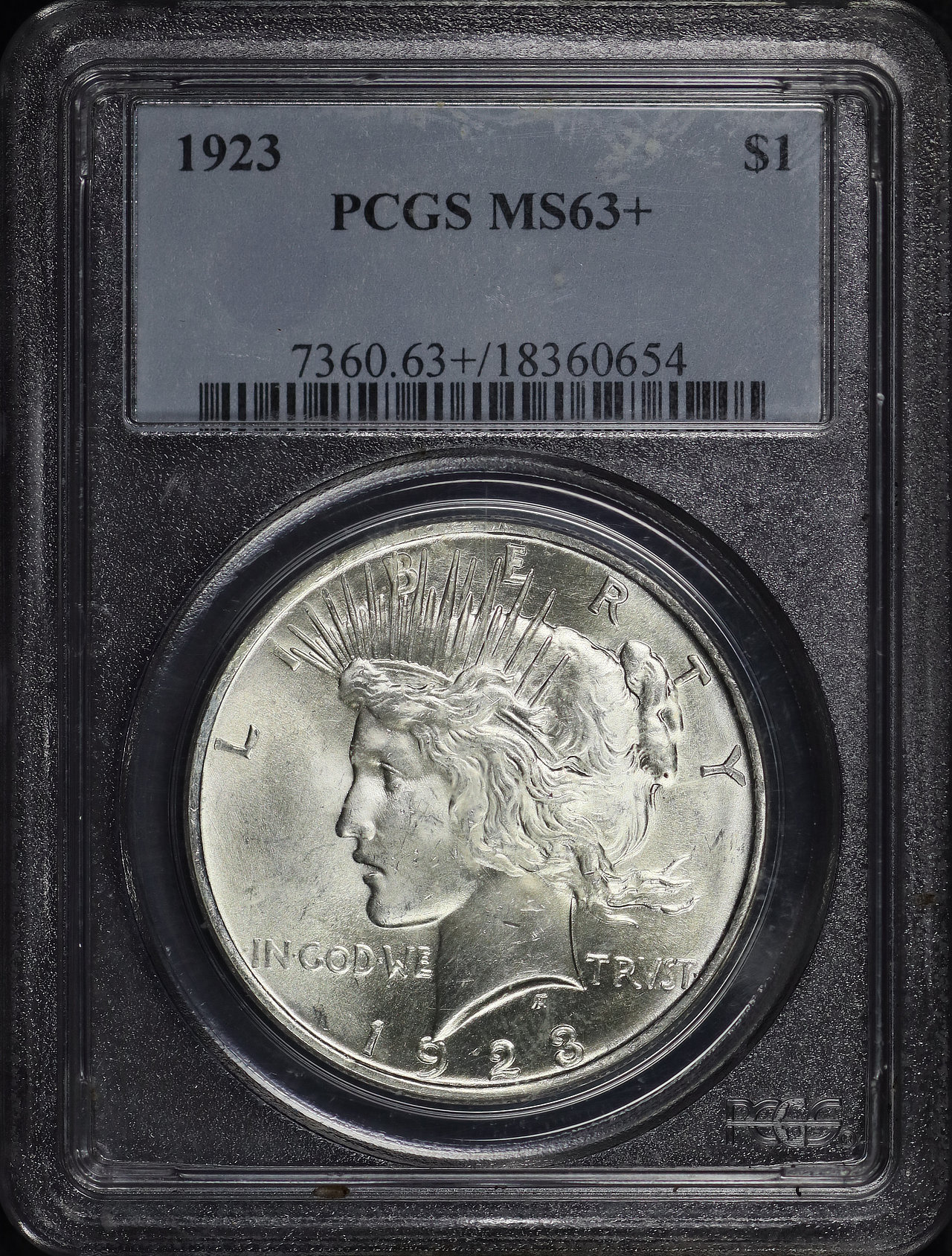 1923 Peace Dollar PCGS MS-63+ designed by Anthony de Francisci.
