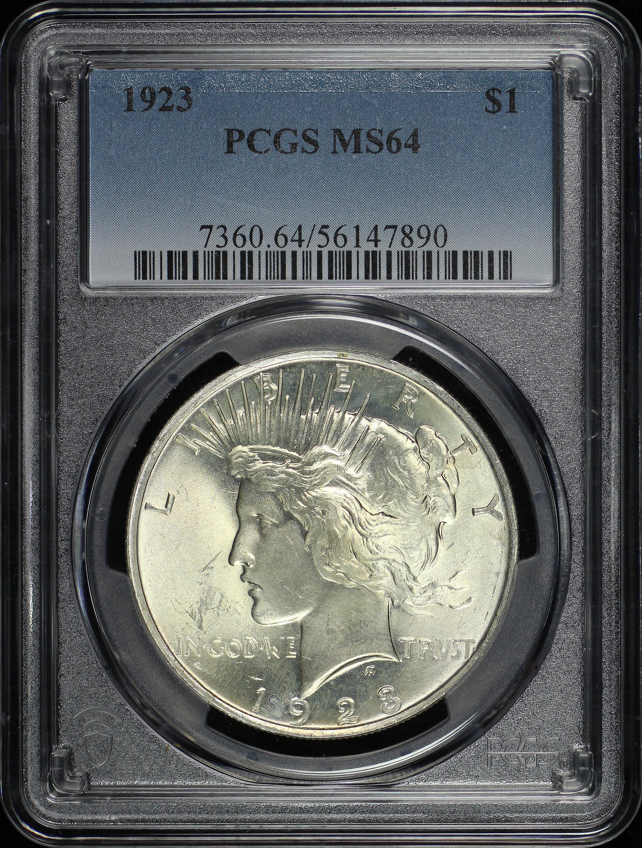 1923 Peace Dollar PCGS MS-64 designed by Anthony de Francisci.