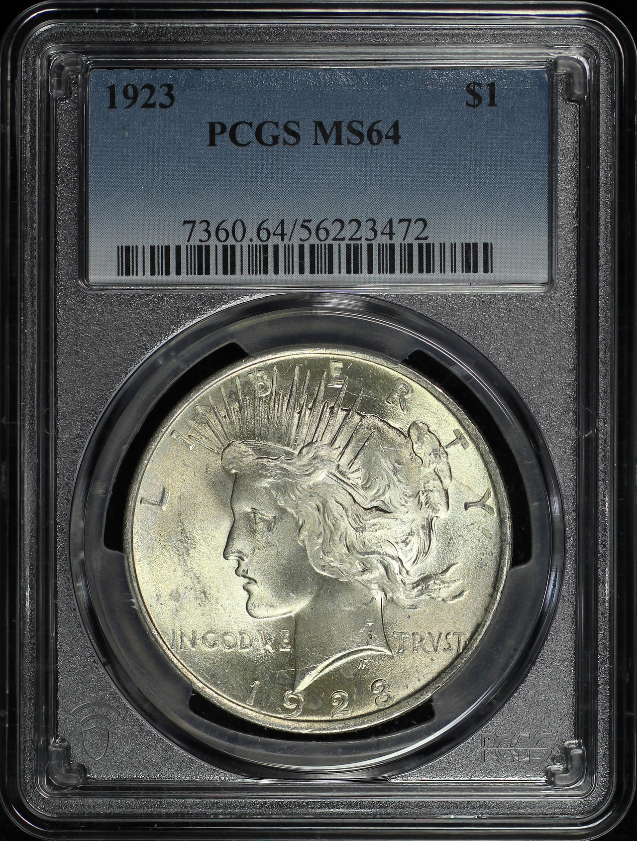 1923 Peace Dollar PCGS MS-64 designed by Anthony de Francisci.