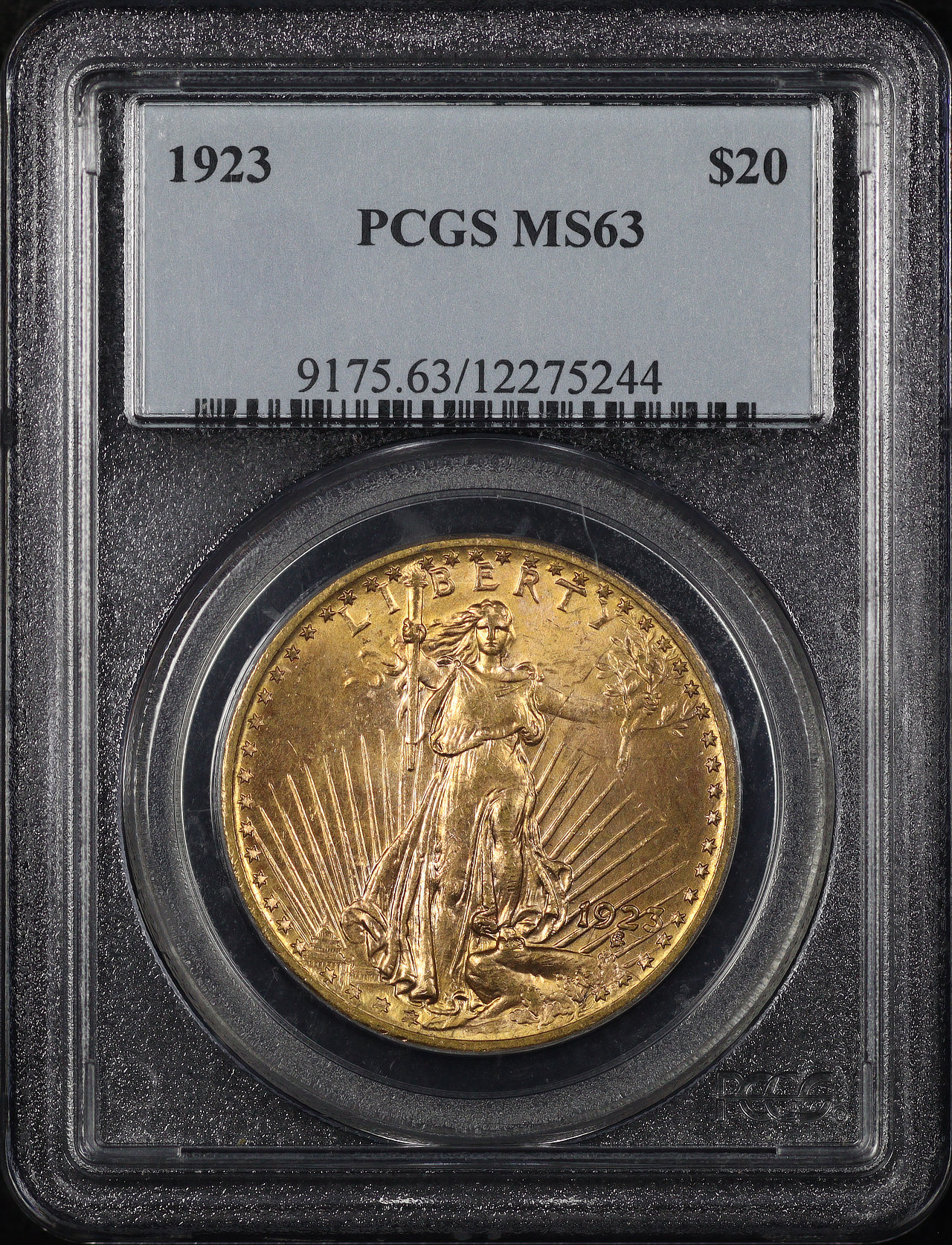 1923 St. Gaudens $20 PCGS MS-63 designed by Augustus Saint Gaudens.
