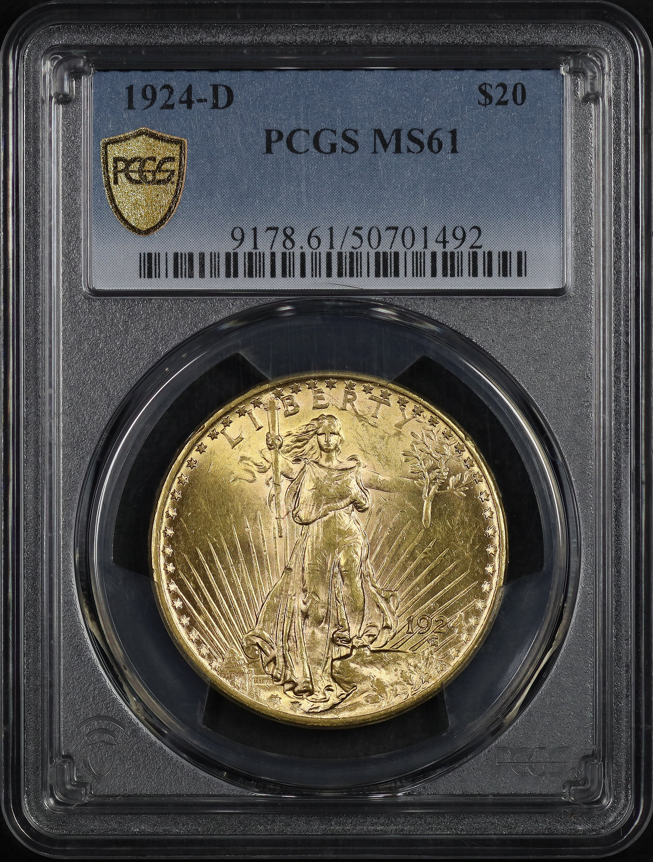 1924-D St. Gaudens $20 PCGS MS-61 designed by Augustus Saint Gaudens.