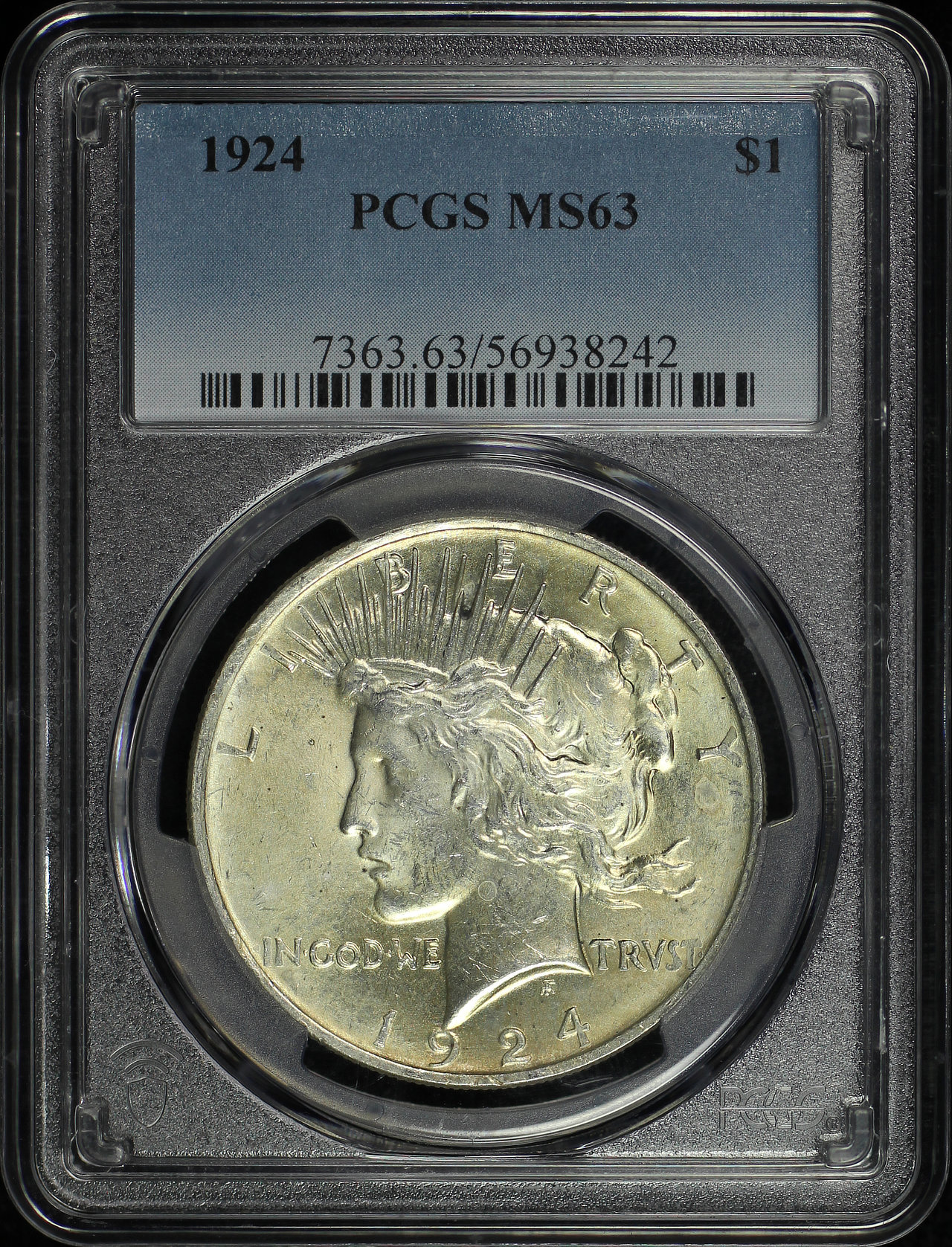 1924 Peace Dollar PCGS MS-63 designed by Anthony de Francisci.