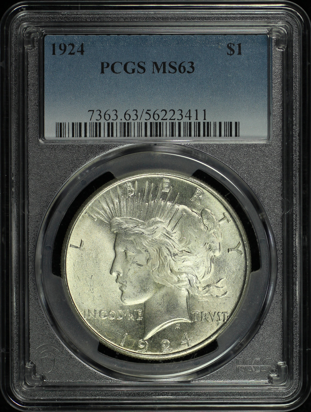 1924 Peace Dollar PCGS MS-63 designed by Anthony de Francisci.