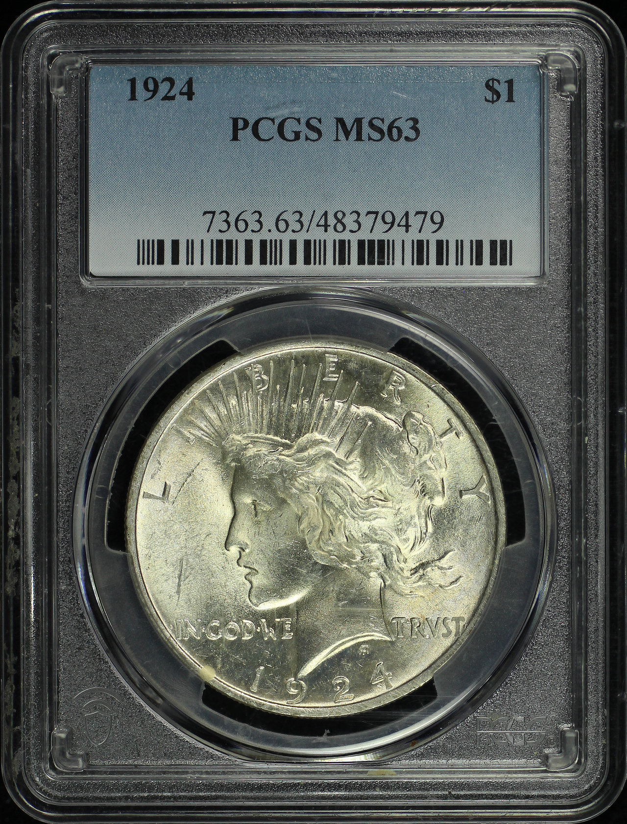 1924 Peace Dollar PCGS MS-63 designed by Anthony de Francisci.