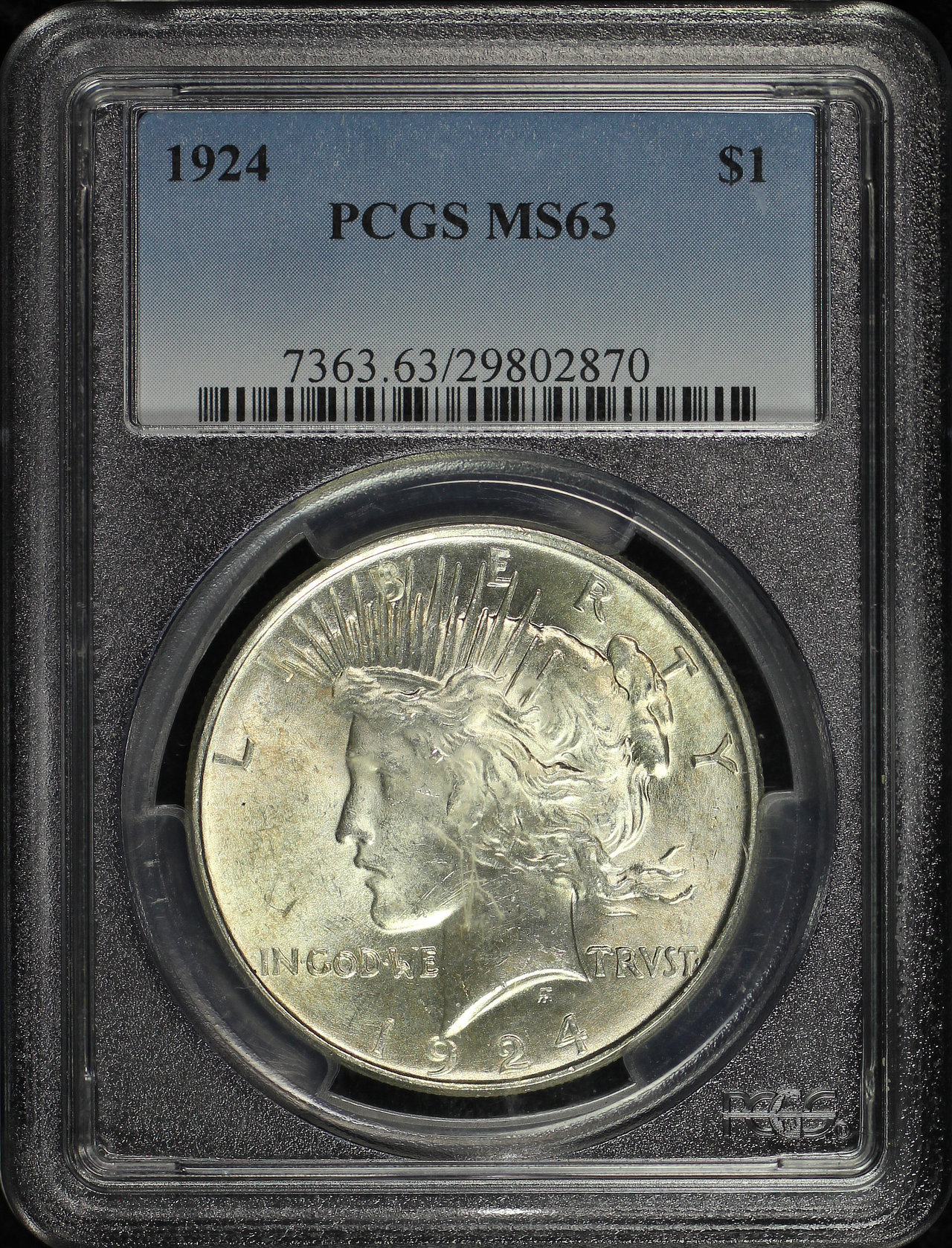 1924 Peace Dollar PCGS MS-63 designed by Anthony de Francisci.