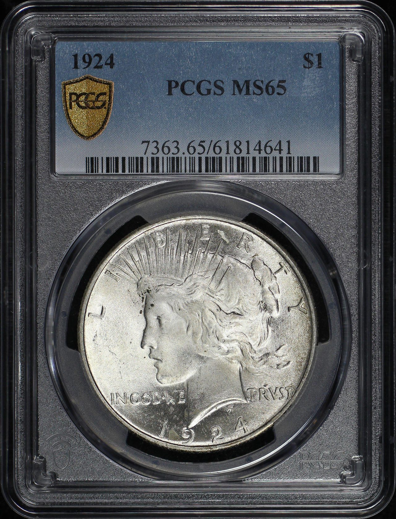 1924 Peace Dollar PCGS MS-65 designed by Anthony de Francisci.